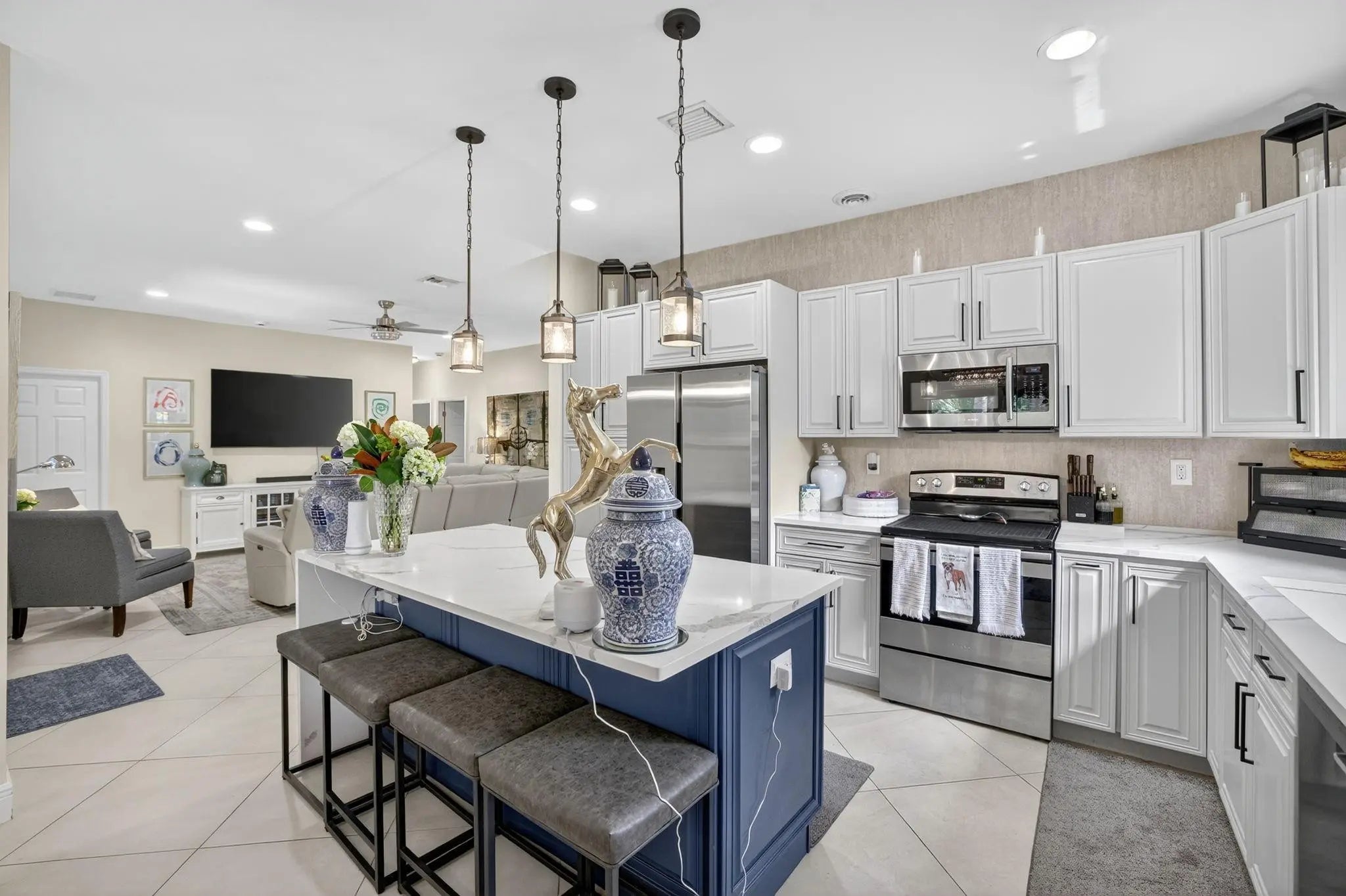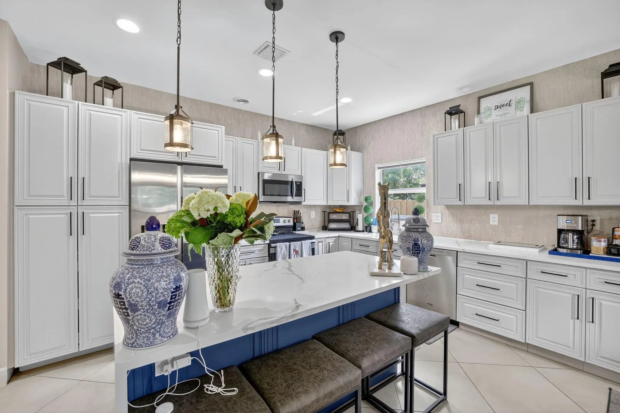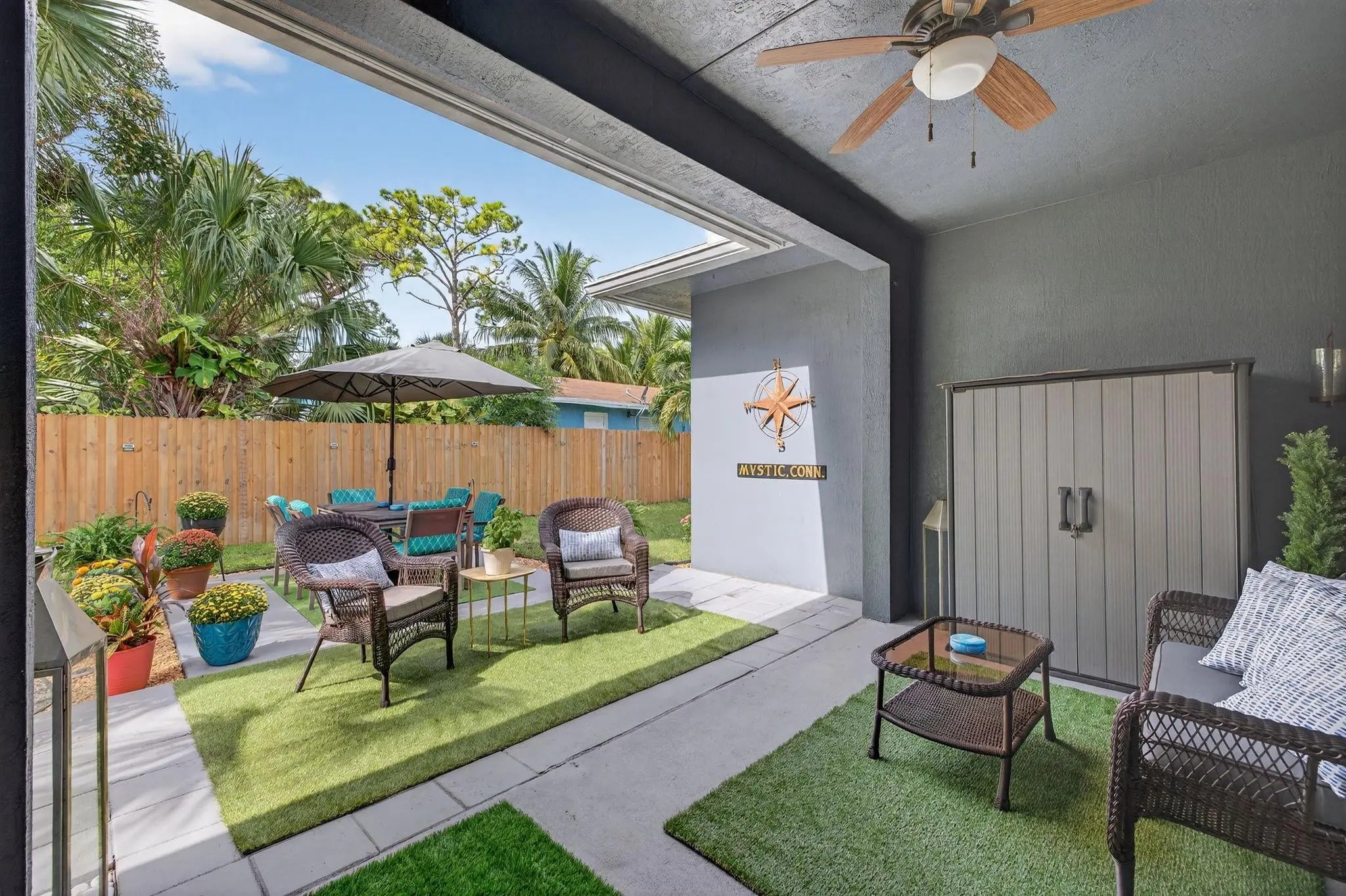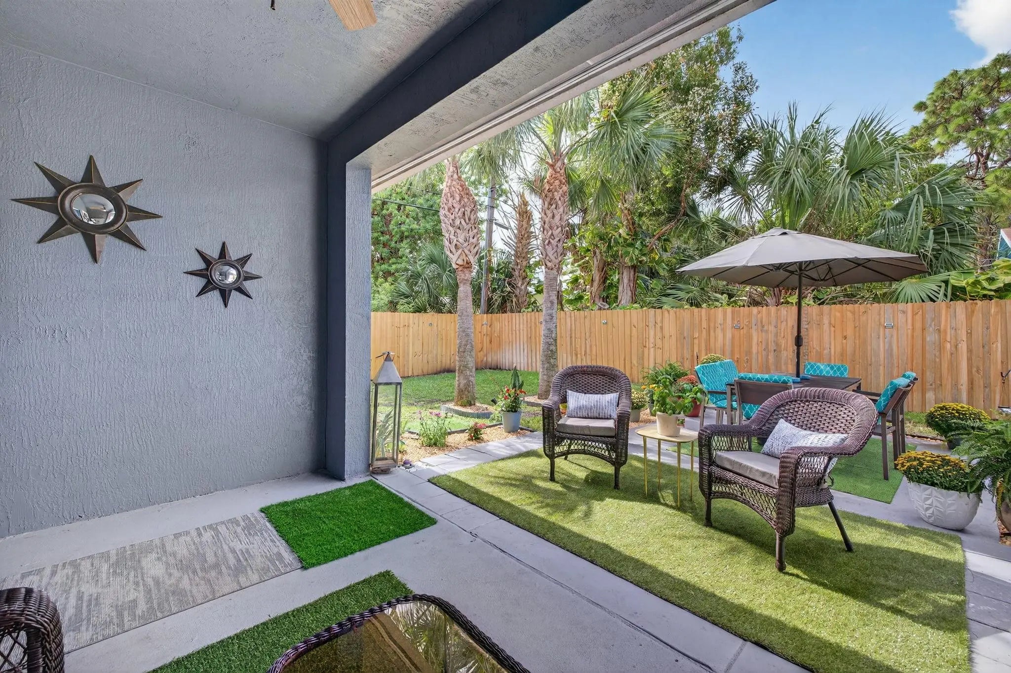 APPRAISED 9/29/25 @ $675,000 Fully solar-powered (transferable) and brimming with high-end upgrades, this home blends luxury and energy efficiency. The kitchen shines with quartz countertops, 6.5ft X 3.5ft island with waterfall edge, custom Italian wallpaper bespoke live-edge wood shelving above the bar and overhead adjustable lighting. All appliances are new within the last 2 years, including commercial-grade faucet and wine cooler. Home features new AC coils, remote-controlled fans, new patio pavers, smart irrigatioon can control remotely, NEW UP TO DATE CODES Fire/Carbon Monoxide alarms in every room. New fence 7/2025. Primary bath new custom waterproof wood slat wall, mirrows,faucets, lighting (9/2025) in 2nd bath new vanity, sink,