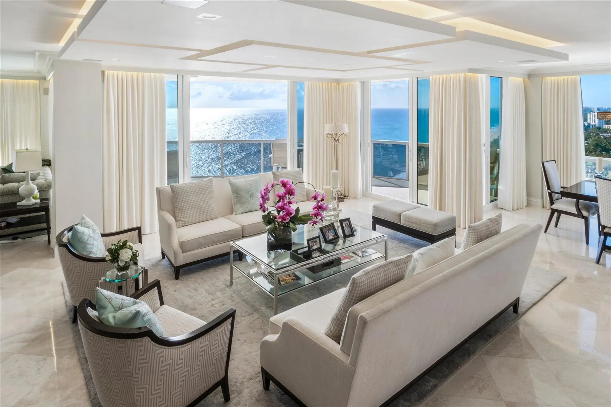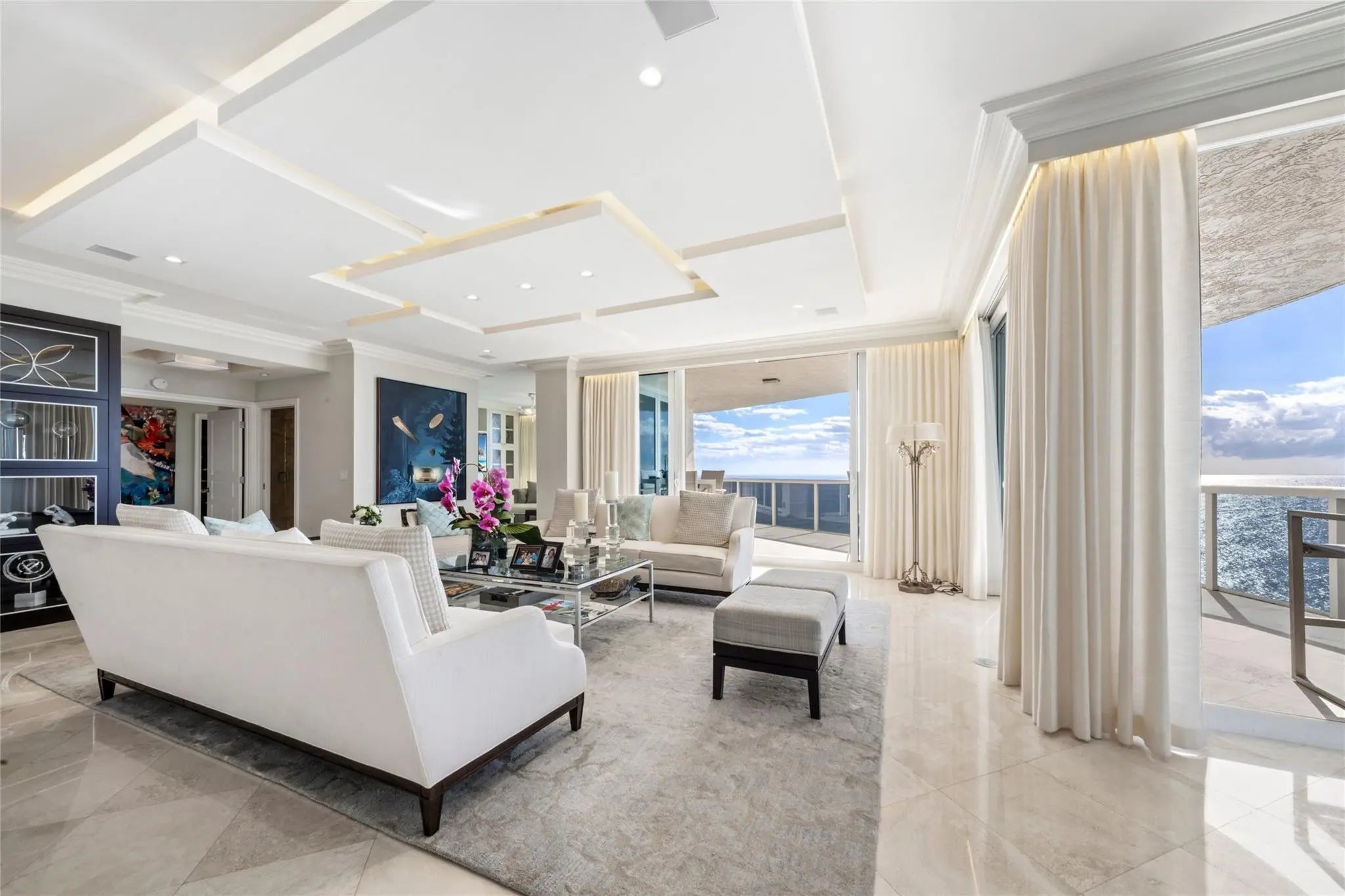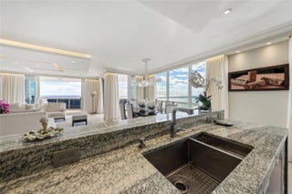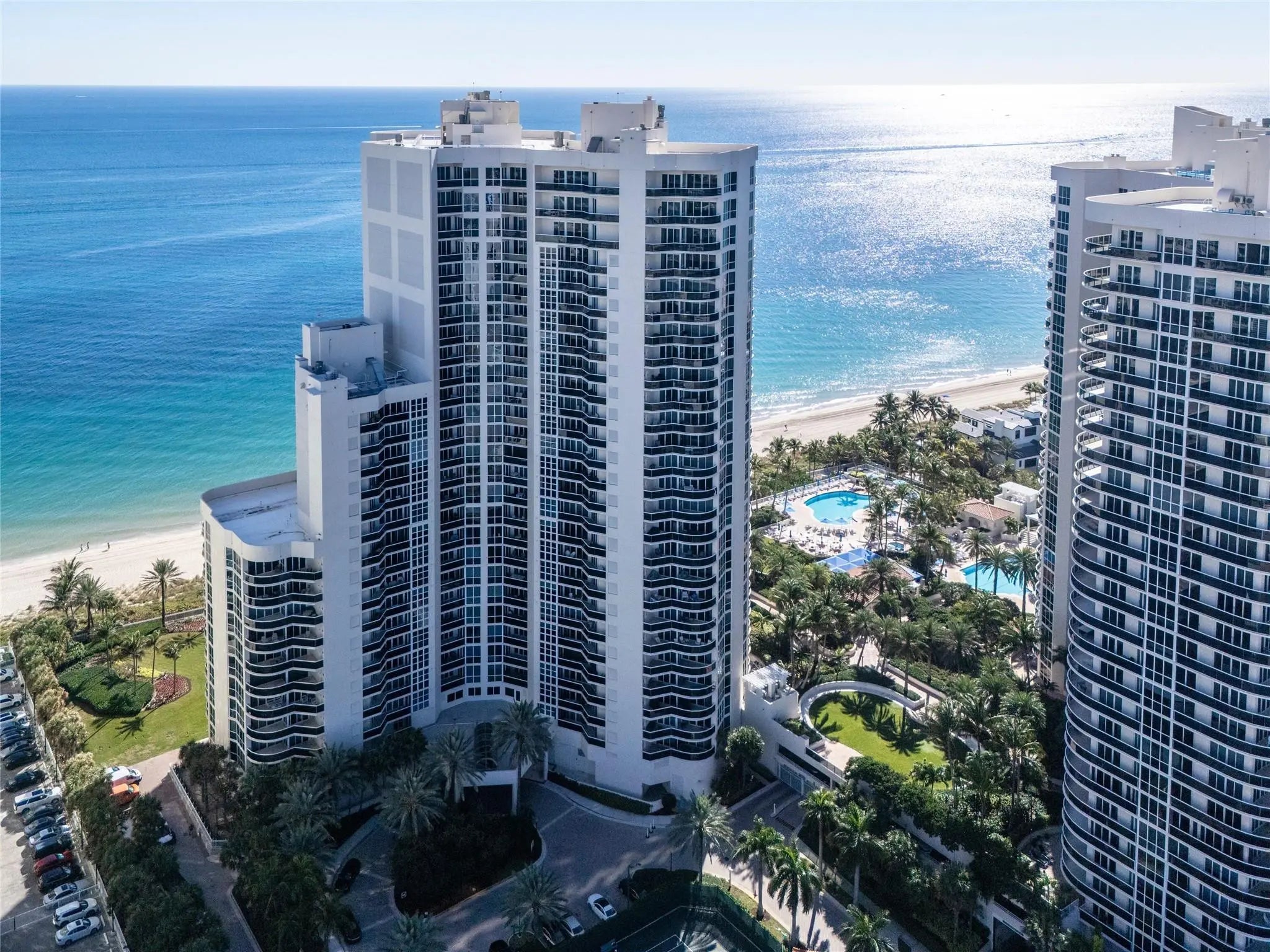 DIRECT OCEAN FRONT RESIDENCE, RARELY AVAILABLE, SPECTACULAR DIRECT OCEAN AND COAST LINE VIEWS, TRULY BEST SOUTHEAST VIEWS & FLOOR PLAN AROUND, Luxury living on the sand. Completely renovated with designer finishes. Open Floor plan,3 bedrooms plus office. Floor to ceiling Impact Glass, Private Elevator, private foyer, Smart home technology, new AV Equip & TV, Architecturally designed ceilings, customized automated window treatments, marble floors, 2 New AC units, 2 New HWH, New House Water Filtration system, tons of storage . This exquisite gated residence is situated on over 10 acres of lush landscaping with resort-like amenities, 2 pools, tennis courts, fitness center, private beach pavilion cafe, spas, saunas, steam room, pet friendly, 2Garage Spots,1 w/EV Charging Station PRICED TO SELL