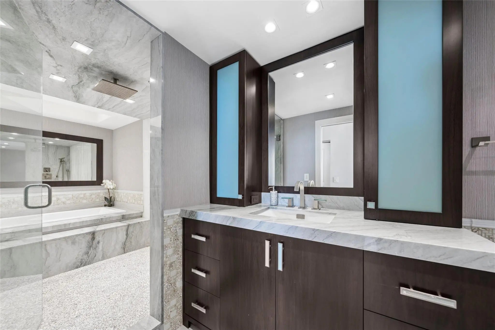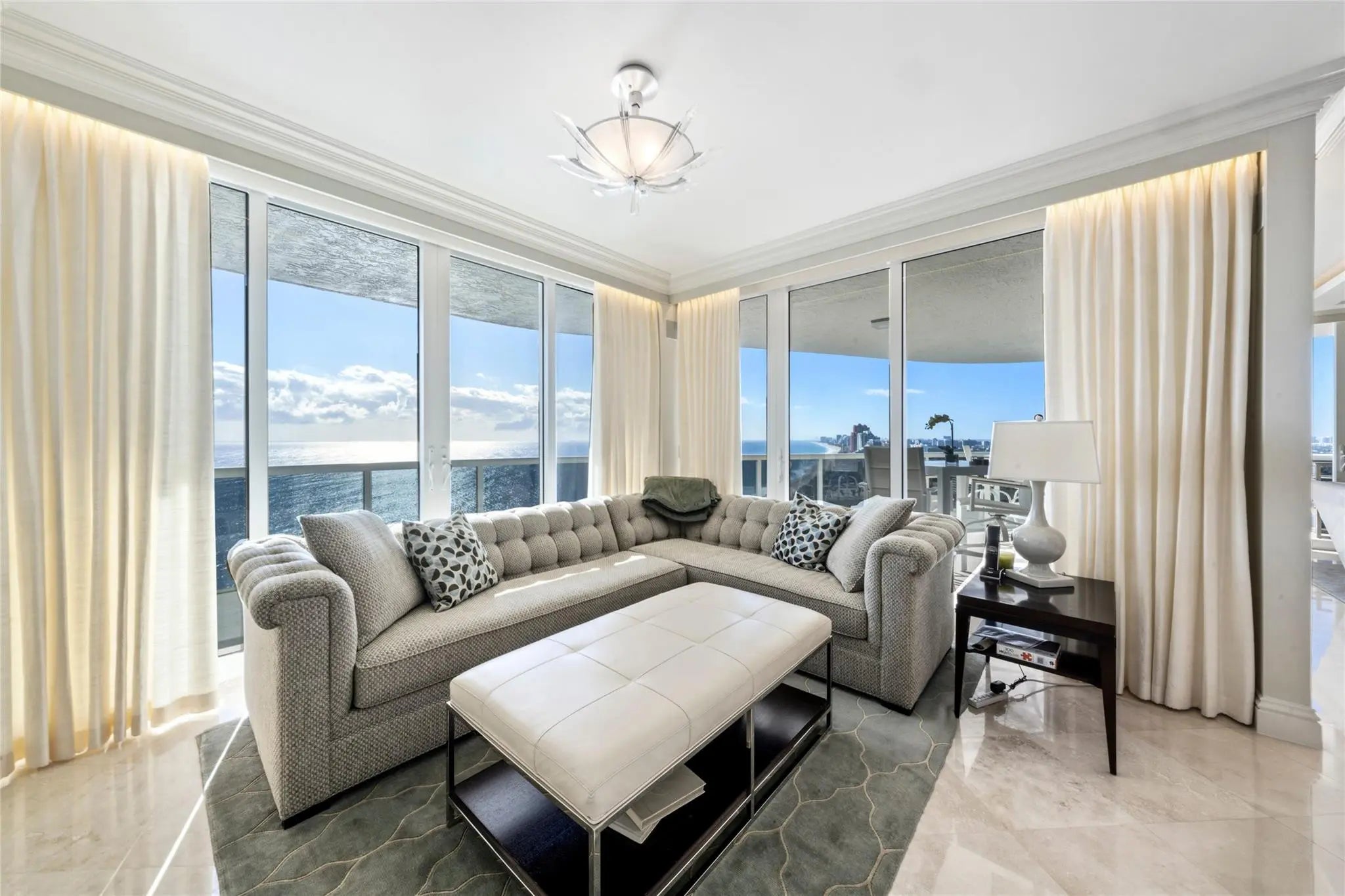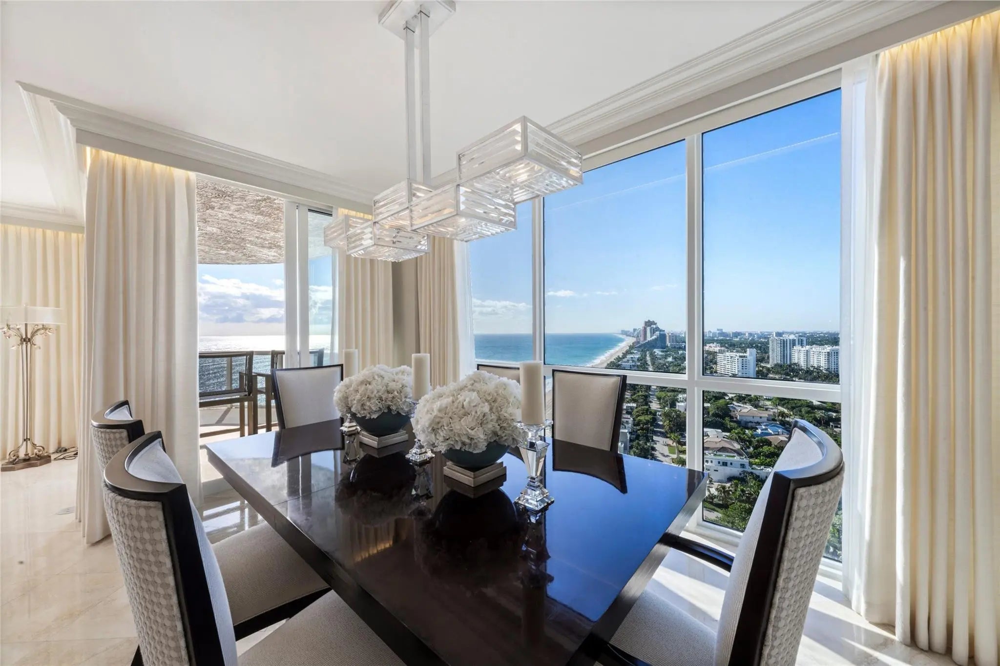 DIRECT OCEAN FRONT RESIDENCE, RARELY AVAILABLE, SPECTACULAR DIRECT OCEAN AND COAST LINE VIEWS, TRULY BEST SOUTHEAST VIEWS & FLOOR PLAN AROUND, Luxury living on the sand. Completely renovated with designer finishes. Open Floor plan,3 bedrooms plus office. Floor to ceiling Impact Glass, Private Elevator, private foyer, Smart home technology, new AV Equip & TV, Architecturally designed ceilings, customized automated window treatments, marble floors, 2 New AC units, 2 New HWH, New House Water Filtration system, tons of storage . This exquisite gated residence is situated on over 10 acres of lush landscaping with resort-like amenities, 2 pools, tennis courts, fitness center, private beach pavilion cafe, spas, saunas, steam room, pet friendly, 2Garage Spots,1 w/EV Charging Station PRICED TO SELL