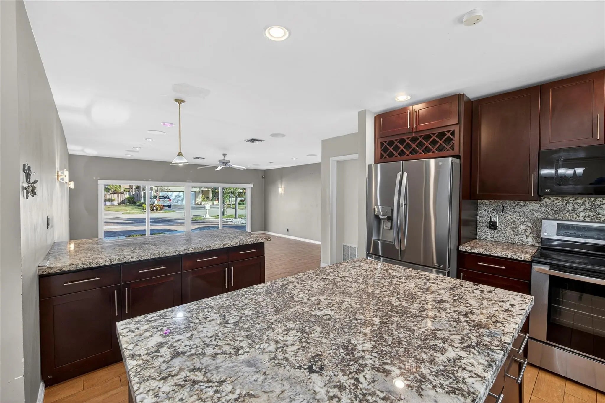 Welcome to your dream home in Palm Aire Village! This beautifully updated 4 bedroom, 2 bath plus office home sits on a huge corner lot and has a bright, open feel with a spacious family room and stylish porcelain tile floors throughout. The kitchen is a total dream with sleek granite countertops, stainless steel appliances, and tons of cabinet space. Step outside to your own backyard paradise, complete with a tiki hut, a great patio, and a saltwater pool, so relaxing and fun! Plus, this home boasts a metal roof, hurricane impact windows & doors and a whole-house generator. You'll love this family-friendly neighborhood, no HOA and central to everything, with easy access to I-95 and the Turnpike. Come see why this is the perfect place to call home.