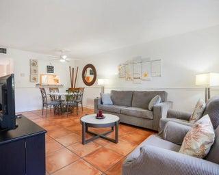 Charming 55+ first-floor condo in Dover Hall. This 1 bed, 1 bath unit features a custom kitchen with high-end cabinetry and new electric panel. Enjoy peace of mind with hurricane impact windows throughout, plus a 2023 roof and a 2025 water heater. Modern updates continue with wood and ceramic flooring throughout, and completed 50-year milestone inspection. Fresh, effortless living in a secure, well-maintained community. Perfect for comfort, convenience, and hassle-free ownership. Can be sold all furnished.
