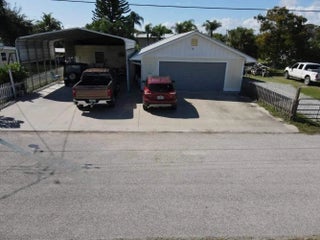 Almost a 1/2 acre of waterfront property with lake access. Great Investment property~3 ADJOINING WATERFRONT LOTS~ Located on a deep canal with access to Lake Okeechobee. The property features a CBS 2 bedroom/ 2 bathroom updated home, with the walls and ceiling made of beautiful pecky cypress, solid wood floors and new solid surface countertops. The property is fenced with a 30 X 26 carport, 28 X 58 garage and an additional 12 X 24 bonus room attached to the garage. The 3rd lot is vacant, so you can use your imagination with how you'll utilize it. The metal roof on the home 2 years old, siding is 2 years old, A/C unit is a year old with a 10 year warranty. Hot water heater is also only a year old. Don't miss out on this rare find. Call for your showing today!! Measurements are approximate.