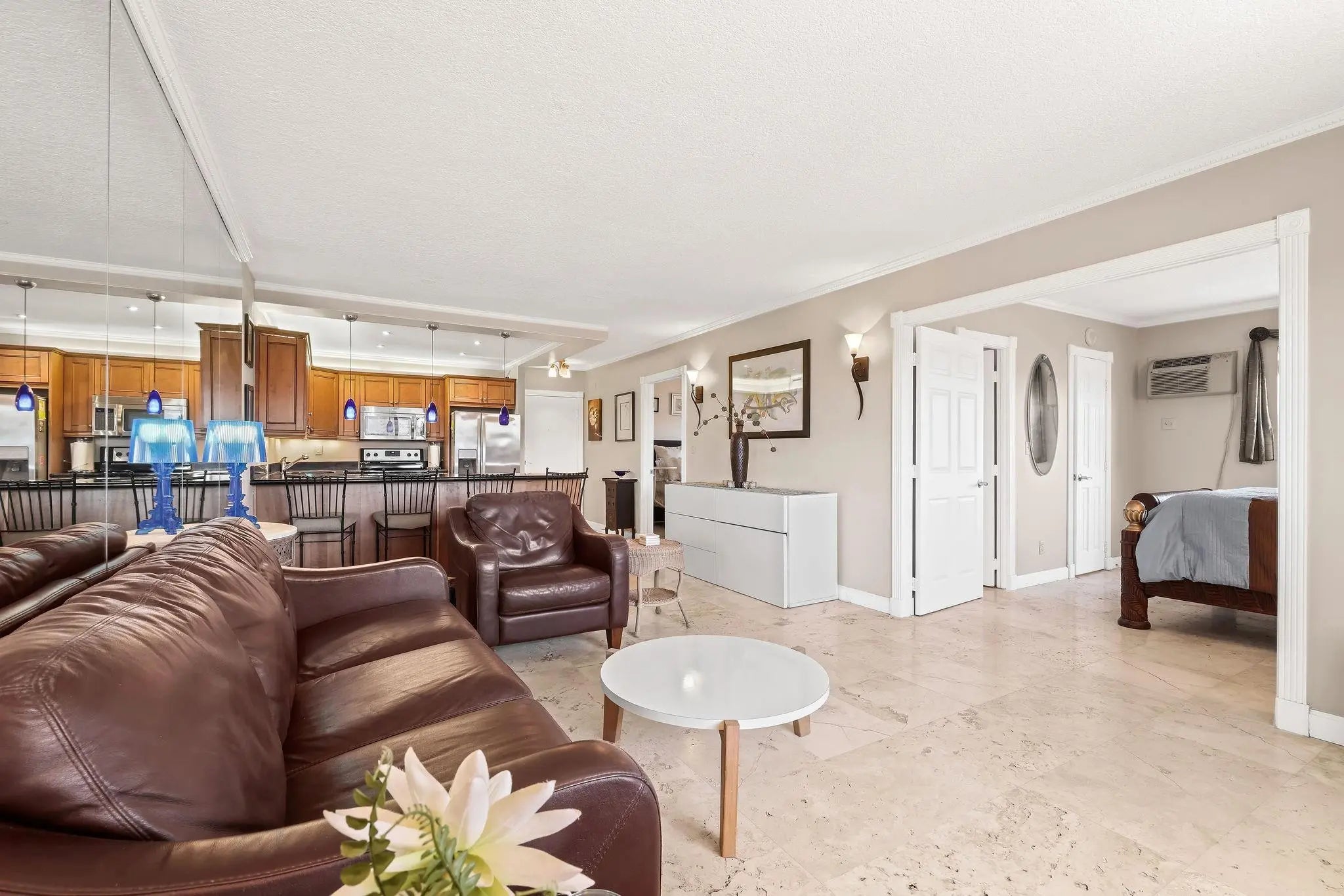 Step into this stunning corner unit and be welcomed by an inviting atmosphere filled with natural light streaming through expansive windows. The open floor plan seamlessly connects the living room, dining area, and kitchen, featuring Travertine marble floors and sleek modern countertops. Spacious bedrooms showcase breathtaking views of Fort Lauderdale Beach, while the elegantly appointed bathroom offers contemporary fixtures and a generous vanity. Enjoy the private balcony’s panoramic vistas of Las Olas Marina, the city skyline, ocean, Intracoastal Waterway, and sunsets. With no rec or land lease and a fully funded budget, this residence delivers peace of mind and luxury living just steps from the new marina, vibrant restaurants, nightlife, and the beach.