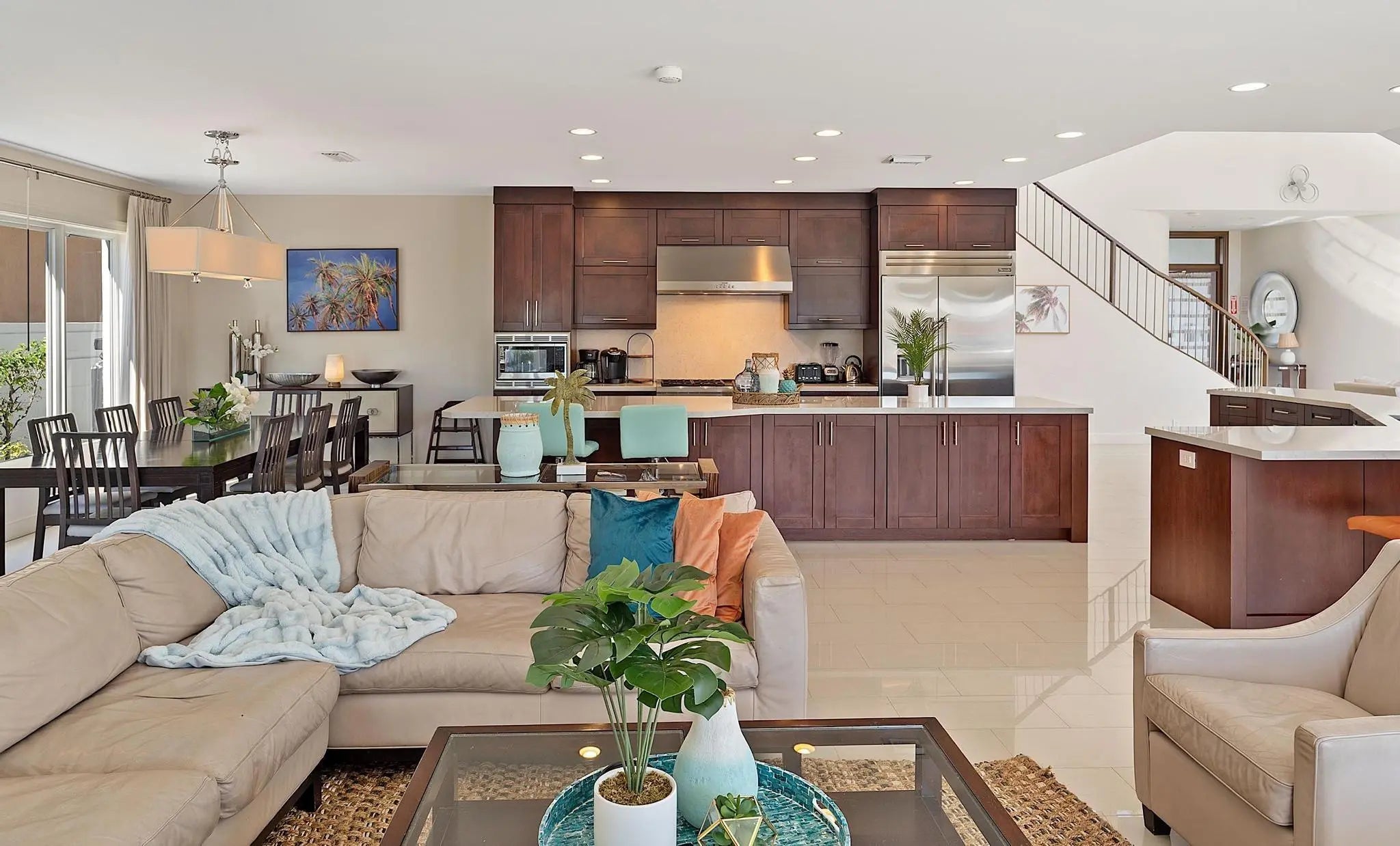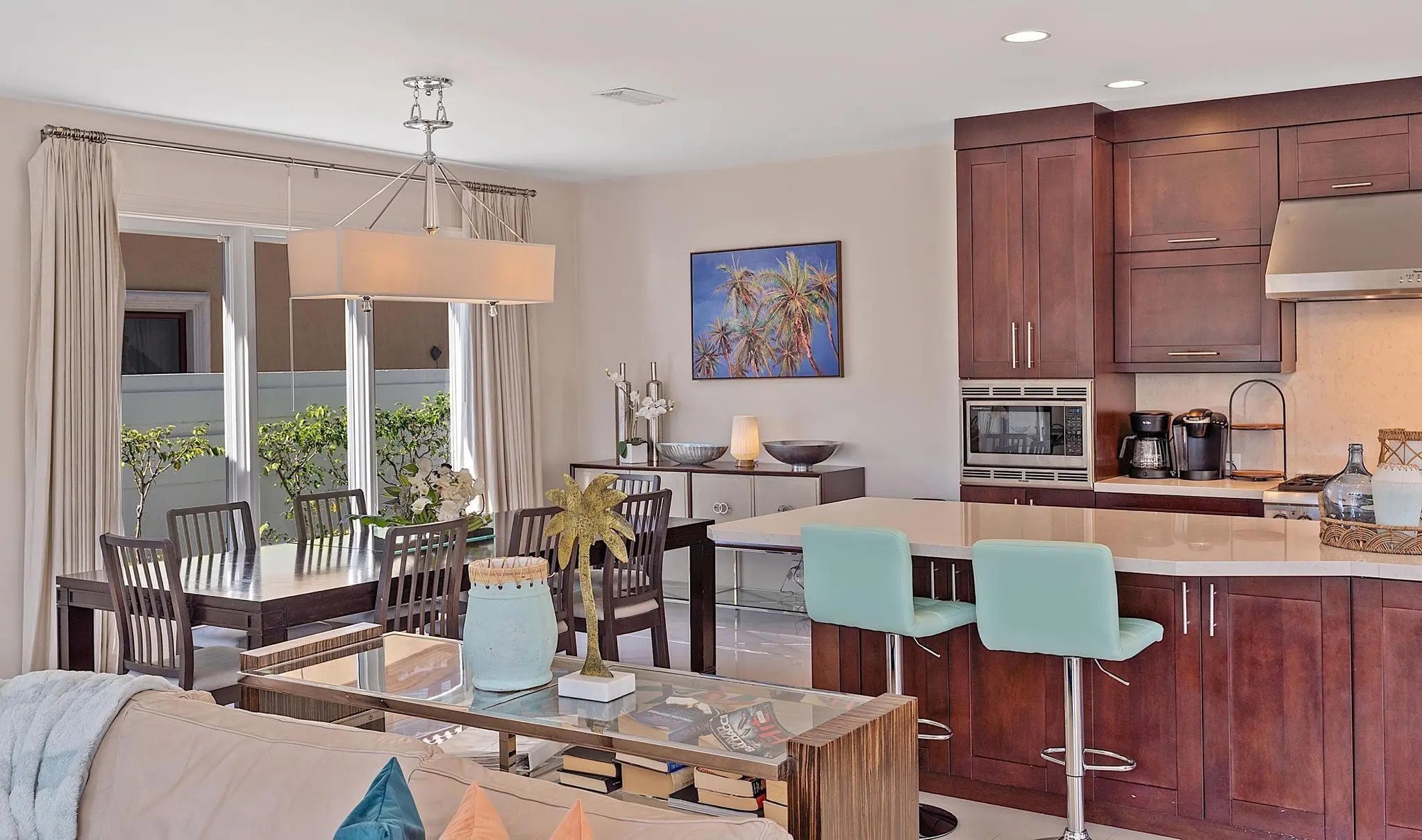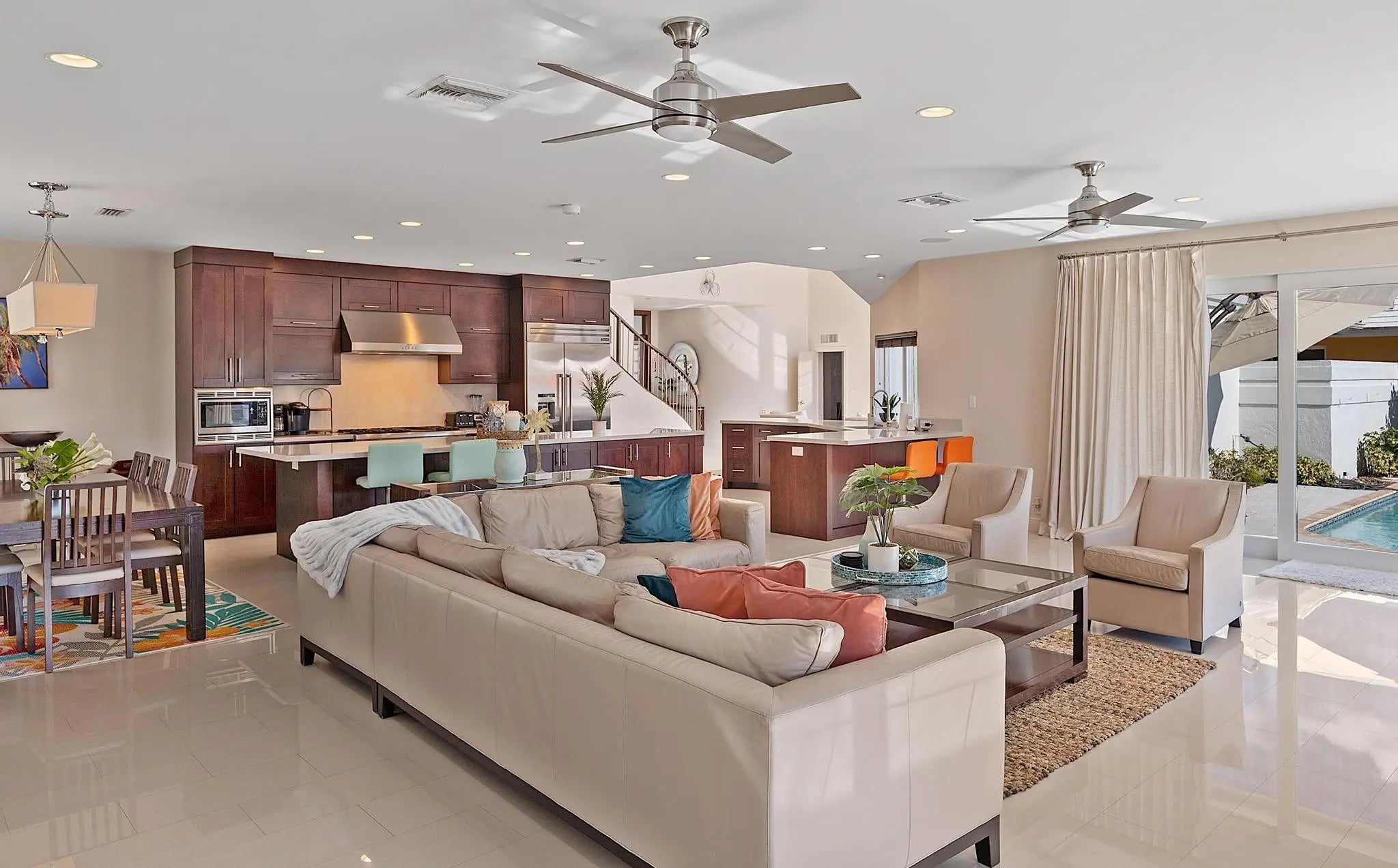 Seasonal Rental - Fully furnished. 5 bedroom 4,5 bath waterfront home with heated pool. Available January 1 - May 2026. Primary bedroom suite on first floor together with smaller bedroom and powder room. 3 additional bedrooms with ensuites on second floor. Open bright space kitchen, livingroom, diningarea with large floor to ceiling windows overlooking the pool and patio/dock.