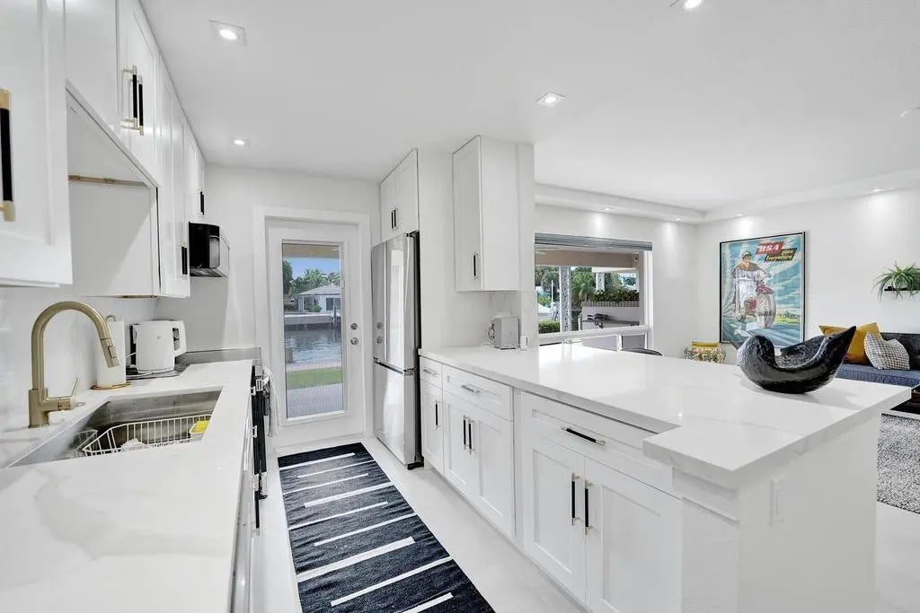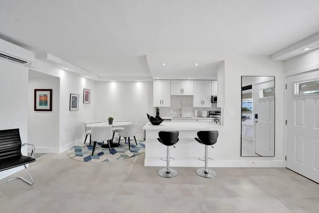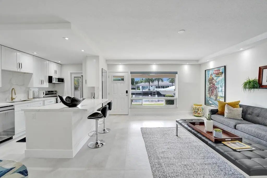 This one-of-a-kind fully renovated ground floor waterfront property with a 52'6" DOCK (accommodate a 49' vessel) & no fixed bridges is an absolute boater's paradise! The unit boasts an open kitchen featuring white shaker cabinetry, stainless steel appliances, quartz countertops & backsplash & gold fixtures, gorgeously updated bathrooms & designer-selected tile flooring. Other features include impact windows & doors, brand new A/C & in-unit full size front-load washer & dryer. This is contemporary coastal living at it's finest with a private porch overlooking the canal & sitting just off of the Intracoastal where you'll enjoy a never-ending boat parade. The boutique & very quiet community offers a heated pool & club room. Unbeatable location only minutes to the beach & Lauderdale by the Sea