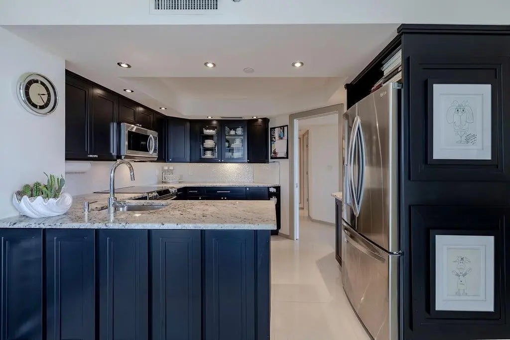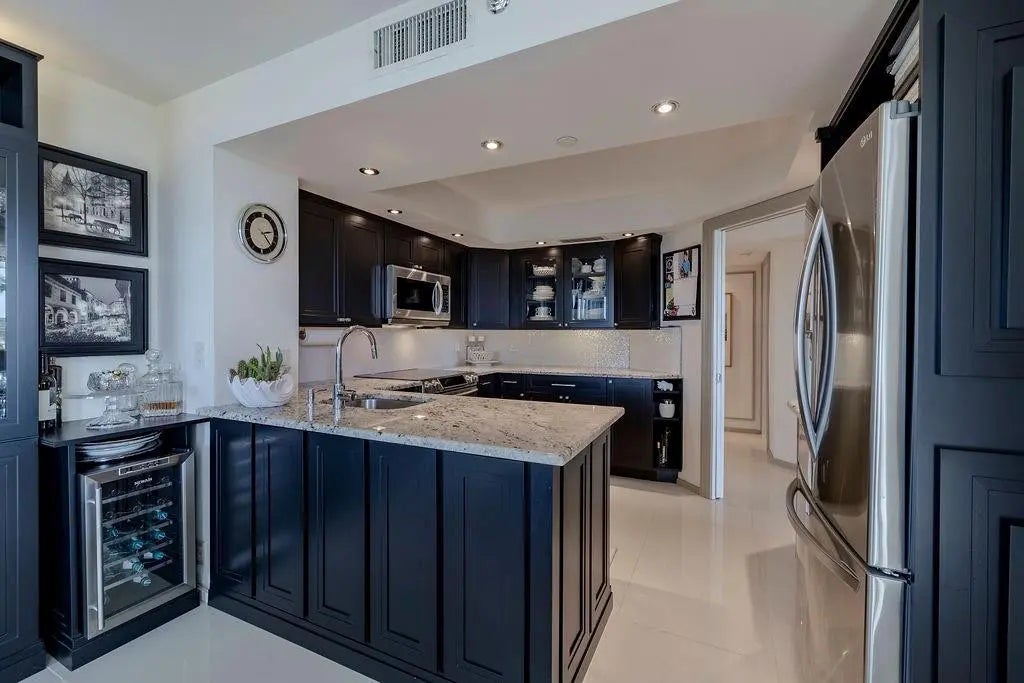 Exuding quiet sophistication and a classic elegance, this chic and inviting home was curated using the best quality components. Custom cabinetry, including a custom wood china closet, lighting, porcelain floors, solid wood doors. Bathrooms offer Duravit floating vanities, Grohe hardware and fixtures, even mold resistant cement board. Modern and refined, yet relaxed, this luxurious oceanside oasis is perfectly located to enjoy the nearby restaurants, shopping, and lively nightlife. At the property, you enjoy an oceanside pool and spa, tennis courts, gym and clubhouse, recently renovated to please the most discerning tastes. It DOES NOT get better than this!!