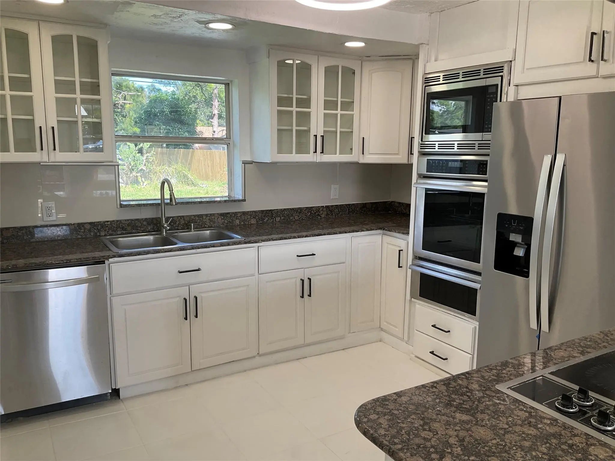 Deal Alert! Motivated Seller!*Move-in Ready Three bedrooms, or two plus huge bonus room! Light and bright, this CBS home is freshly painted, tiled and modern. Stainless appliances in white kitchen with granite counters, plenty of cabinetry, laundry room, ample storage space and generous sized newly tiled bathroom. The garden is large with plenty of room for kids, pets and patio for your barbeque. Nov 2019 roof, cold a/c, new tankless hot water heater, perfect for first time homebuyers, small family, or investors looking to rent immediately. Rent to own financing considered!Excellent neighborhood, White City gem!