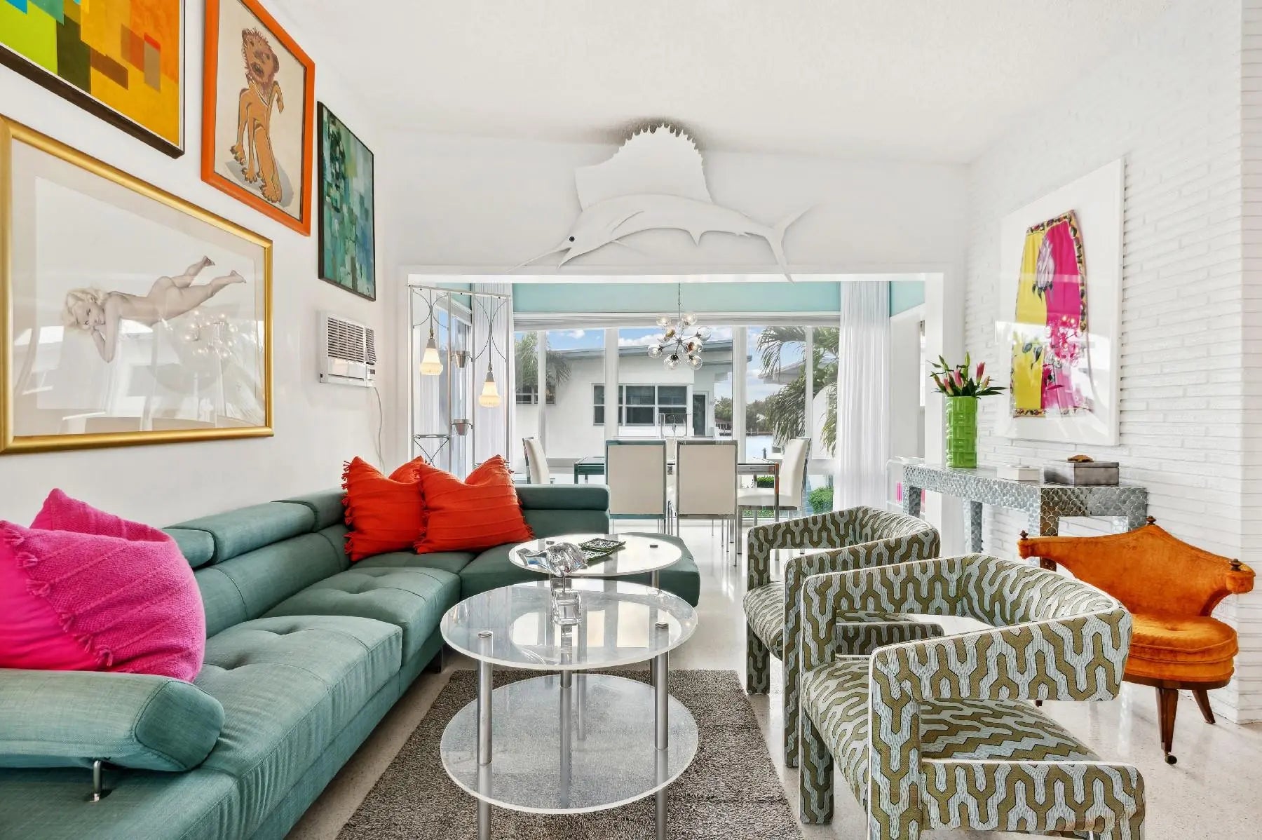 Designer-owned and artfully decorated Mid-Century Modern gem on Fort Lauderdale’s North Beach! This spacious 1BR/1BA showcases vintage pieces, curated art, and sweeping water views—from the kitchen overlooking the pool and Intracoastal to the wide green space beyond the living area. Located just 1.5 blocks from the beach in a waterfront complex with 400’ seawall, heated Intracoastal pool, and daily yacht parade views. Features vaulted “butterfly” ceilings, original terrazzo floors, impact windows, great storage, and reserved parking. Seconds to the sand, The W, Ritz-Carlton, Four Seasons, and top dining spots. Minutes to Publix, Water Taxi, FLL Airport, and Brightline train. Offered fully furnished, turnkey, and ready to enjoy sunsets over the water. Three month minimum, sorry no pets.