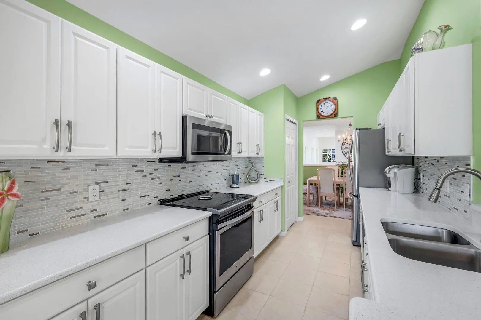 TURNKEY COACH HOME WITH PRESERVE VIEW IN COLONIAL COUNTRY CLUB! This furnished 2BR + den, 2BA home sits on one of the quietest streets in this gated golf community. Enjoy a bright, open floor plan with vaulted ceilings, coastal colors, and abundant natural light. The remodeled kitchen features white shaker cabinets, quartz counters, glass tile backsplash, stainless appliances (2021), and breakfast bar. Relax on the tiled, screened lanai overlooking the peaceful preserve. The primary suite offers a walk-in closet and ensuite bath with dual vanities and glass shower. Features include solar-tinted windows, neutral tile/carpet, and 1-car garage. Steps to two pools and close to Colonial’s resort amenities, golf, dining, and I-75. Offered TURNKEY!