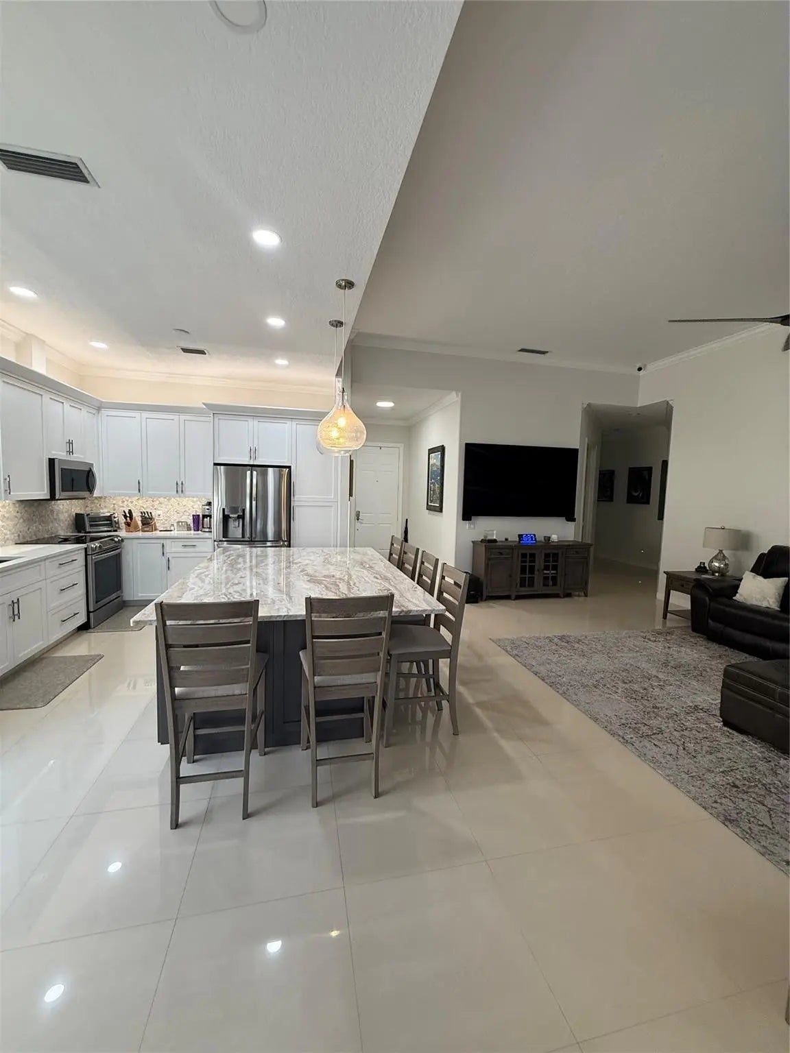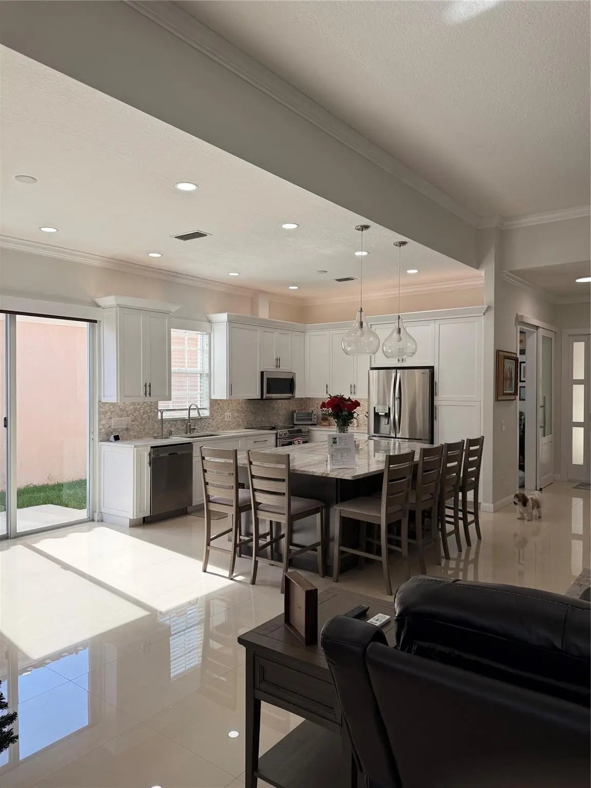 Beautifully Renovated “EXPANDED OAKMONT MODEL” with 3 Bedrooms, 2 Bathrooms Plus Den. Renovated Kitchen with Quartz Countertops, Upgraded Kitchen Appliances, NEW ROOF (2019), Expanded Living Area, LVP in Bedrooms and Porcelain Tile in Main Area, Expanded Lakefront Screened-in Patio, Hurricane Impact Main Sliding Doors, Accordion Shutters throughout the rest of the home. Fully Renovated Master Bedroom and Bathroom with 2 separate toilets (his & Hers), new Wood Cabinets and Quartz Countertops, Finished Walk-In Closet plus 2 additional Closets. Renovated Secondary Bathroom with new Wood Cabinets and Lighted Quartz Countertop. Recessed Exterior Lighting throughout the home. House is sold Fully Furnished plus TV's (Artwork does not convey). Spa Stays with the house. **MOTIVATED SELLER**