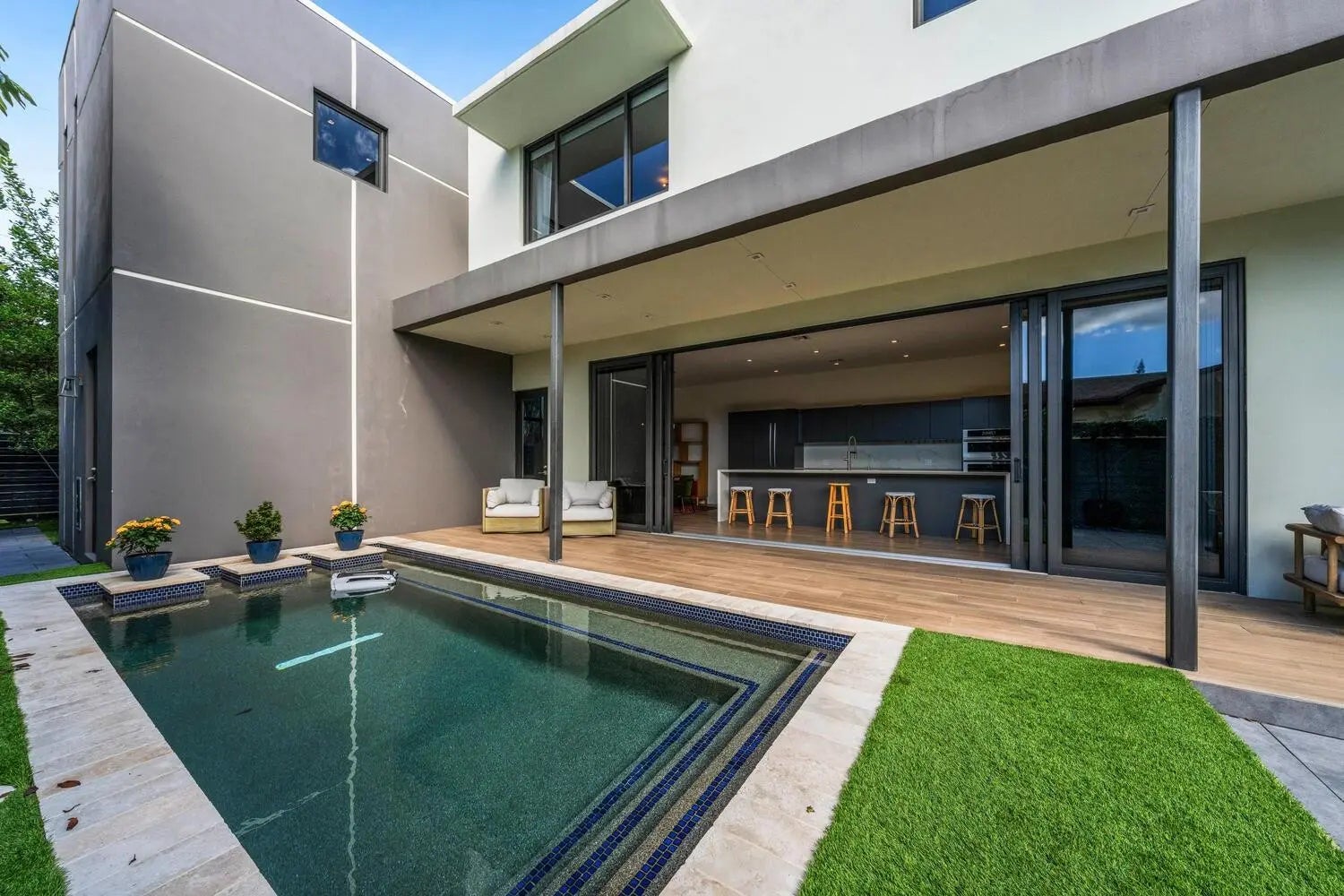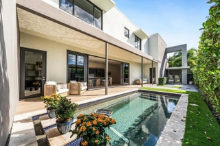 Sophisticated, modern, attached townhouse with courtyard entrance in desirable Tarpon River. Potential separate living area upstairs. Designer kitchen by Italkraft, with sliding glass doors opening to beautiful saltwater pool and patio for entertaining, additional backyard. Fabulous master bedroom, bathroom and closets as well as large guest bedroom. Minutes to the beach, downtown, Las Olas Blvd, airport and major highways.