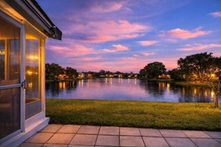 2BR lakefront home with impact windows, updated bath, stainless steel appliances & glass-enclosed sunroom. Low HOA includes pool, clubhouse & 9-hole golf.Enjoy open-concept living with seamless flow between the living, dining and kitchen areas. The bright sunroom overlooks the lake — ideal for morning coffee and peaceful water views.Kitchen features classic wood cabinetry and stainless steel appliances. Impact windows provide added storm protection, energy efficiency and insurance benefits.Low monthly HOA includes community pool, clubhouse, 9-hole golf course, exterior painting every five years and lawn maintenance — offering true low-maintenance South Florida living.Well-maintained community in a tranquil lakefront setting.
