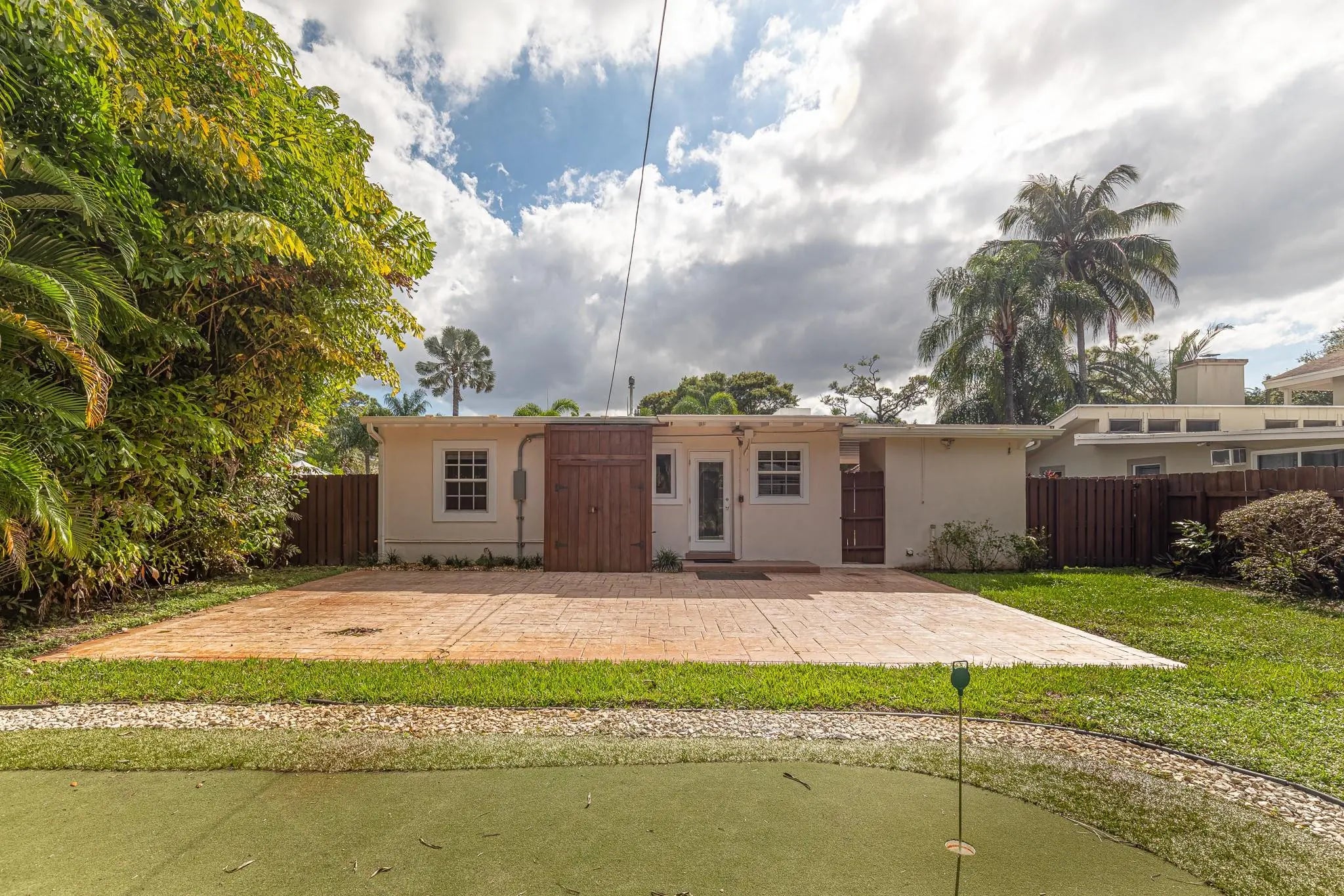 Charming 2-bedroom 1 bath home in East Fort Lauderdale captures classic mid-century style with modern potential. Timeless architectural details like vaulted exposed beam ceilings, original wood burning fireplace, alcove dine in kitchen. Florida Room is a Great Home Office. Fenced in private sanctuary with beautiful landscaping, large yard for entertaining, with Front and Back Patios. Large Shed with Cabinets and Shelving, plus another small shed and some Storage in the Laundry Area. Putting Green in the back yard. Lush green lawn and landscaping. Stamped Concrete Driveway. Great location minutes to downtown, Las Olas, Airport, Port Everglades and the Beach. Neighborhood has 2 parks with Volleyball, Tennis court, walking paths exercise equipment and a passive nature park on the New River.