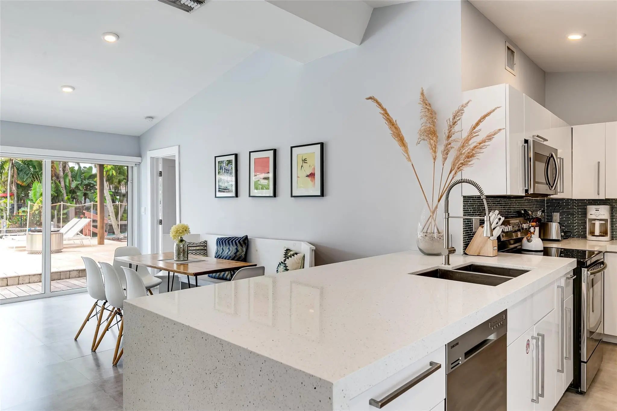 Welcome to Gill Isles! This beautifully remodeled 3-bed 2-bath home offers direct ocean access with a 65-foot seawall and new 40-foot dock, plus, an oversized heated saltwater pool. Step inside and you’ll find a bright, open-concept layout with vaulted ceilings and abundant natural light. The modern kitchen features Samsung stainless steel appliances, quartz countertops, a breakfast nook, triple-door pantry, and custom cabinetry. Large porcelain tile floors, LED recessed lighting, and custom window treatments add to the sophisticated aesthetic. Equipped with impact windows and doors. Perfectly positioned in one of Fort Lauderdale’s most desirable boating communities, just minutes from downtown, Las Olas, Brightline Train, and the Fort Lauderdale International Airport.