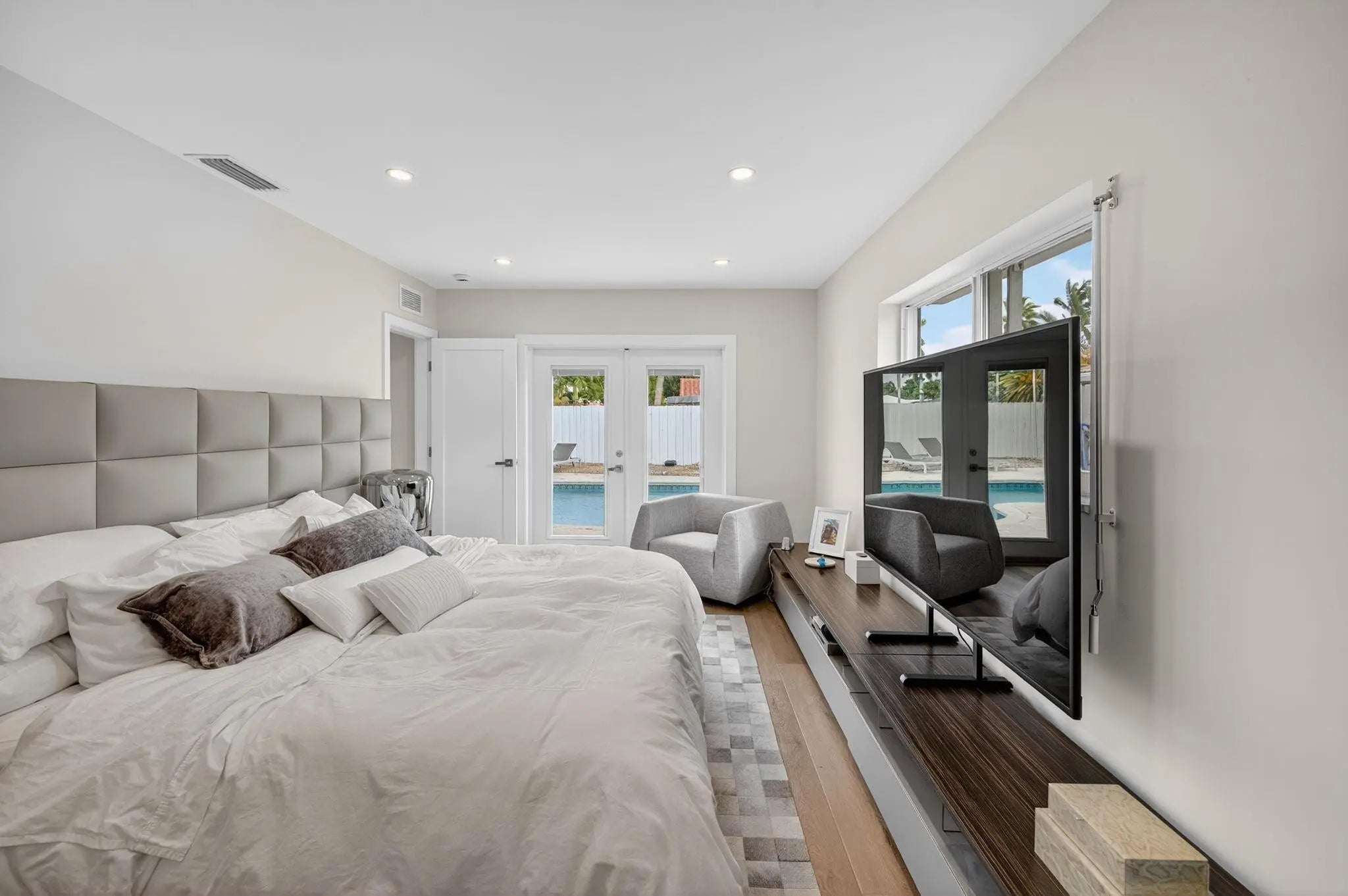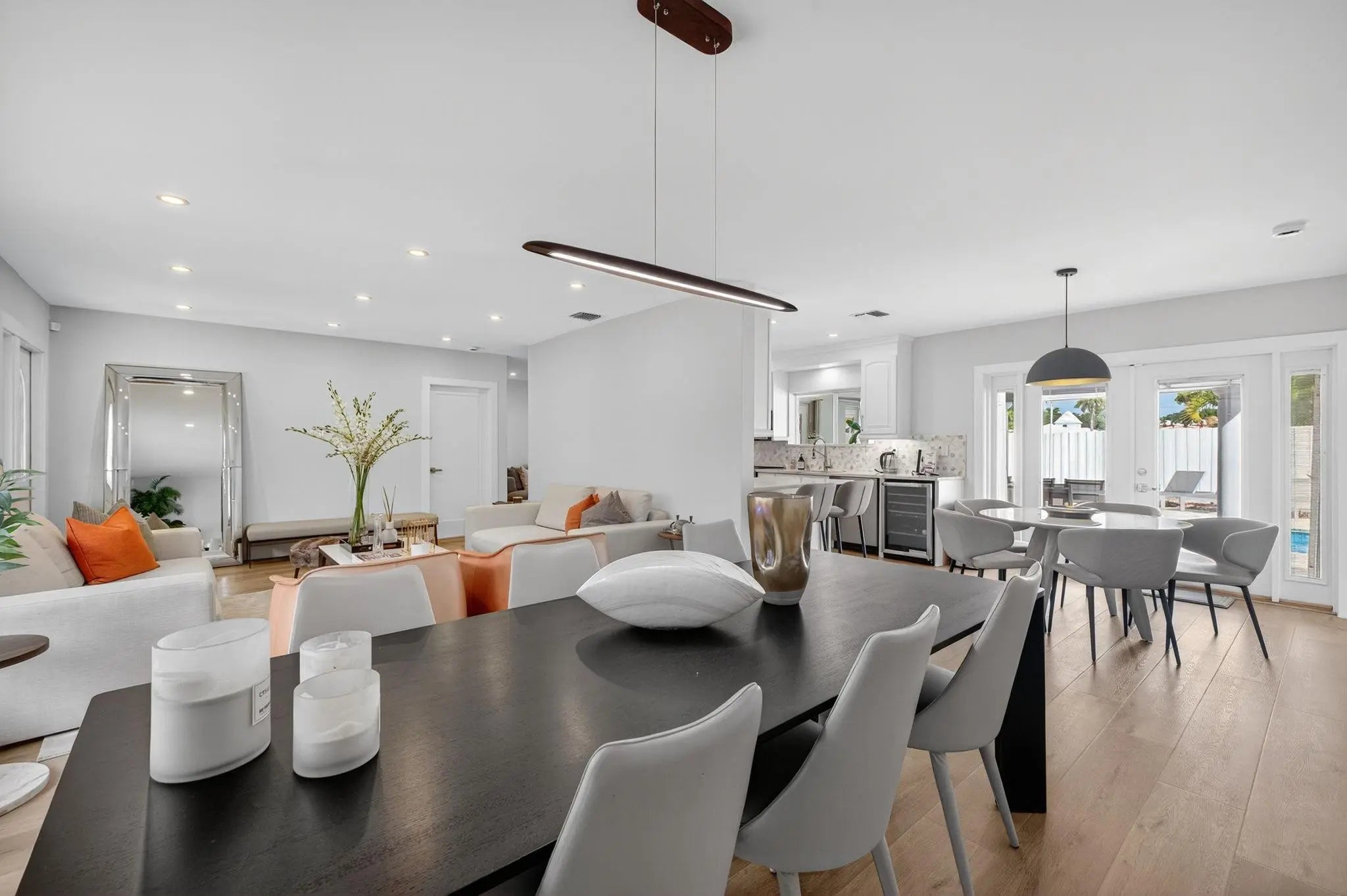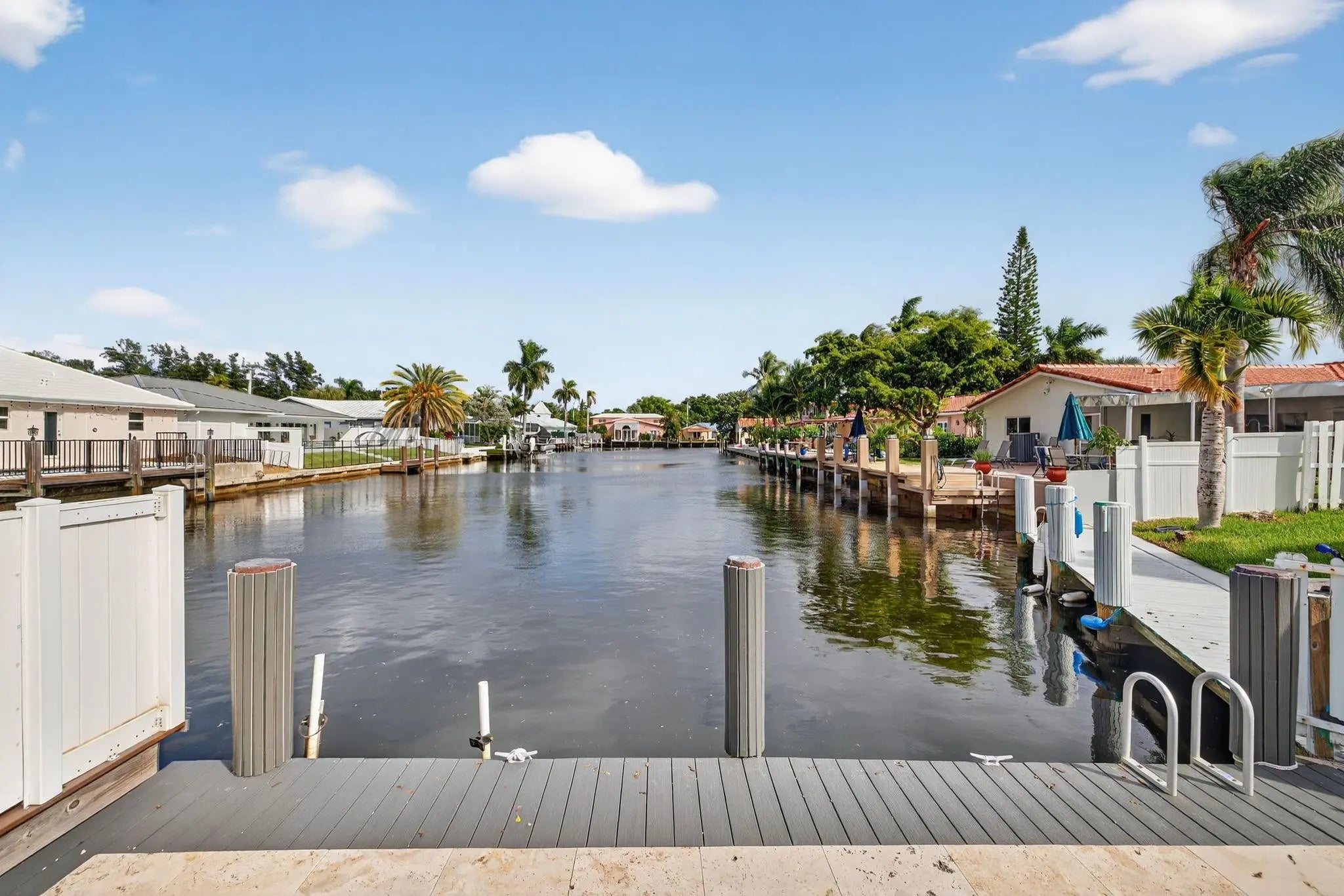 OCEAN ACCESS PROPERTY !!! Experience refined waterfront living in this fully renovated 4-bedroom, 3-bath home. A perfect blend of sophistication and coastal comfort, this single-story residence offers bright open living spaces, elegant finishes, and an indoor-outdoor flow. The modern kitchen features stainless-steel appliances and designer details, while multiple French doors open to a resort-style patio with a pool, canal views, and a dock. Enjoy sunset gatherings by the water or quiet mornings under the palms. Complete with a two-car garage, this home is move-in ready and designed for relaxed luxury. OCEAN ACCESS PROPERTY FIXED BRIDGES