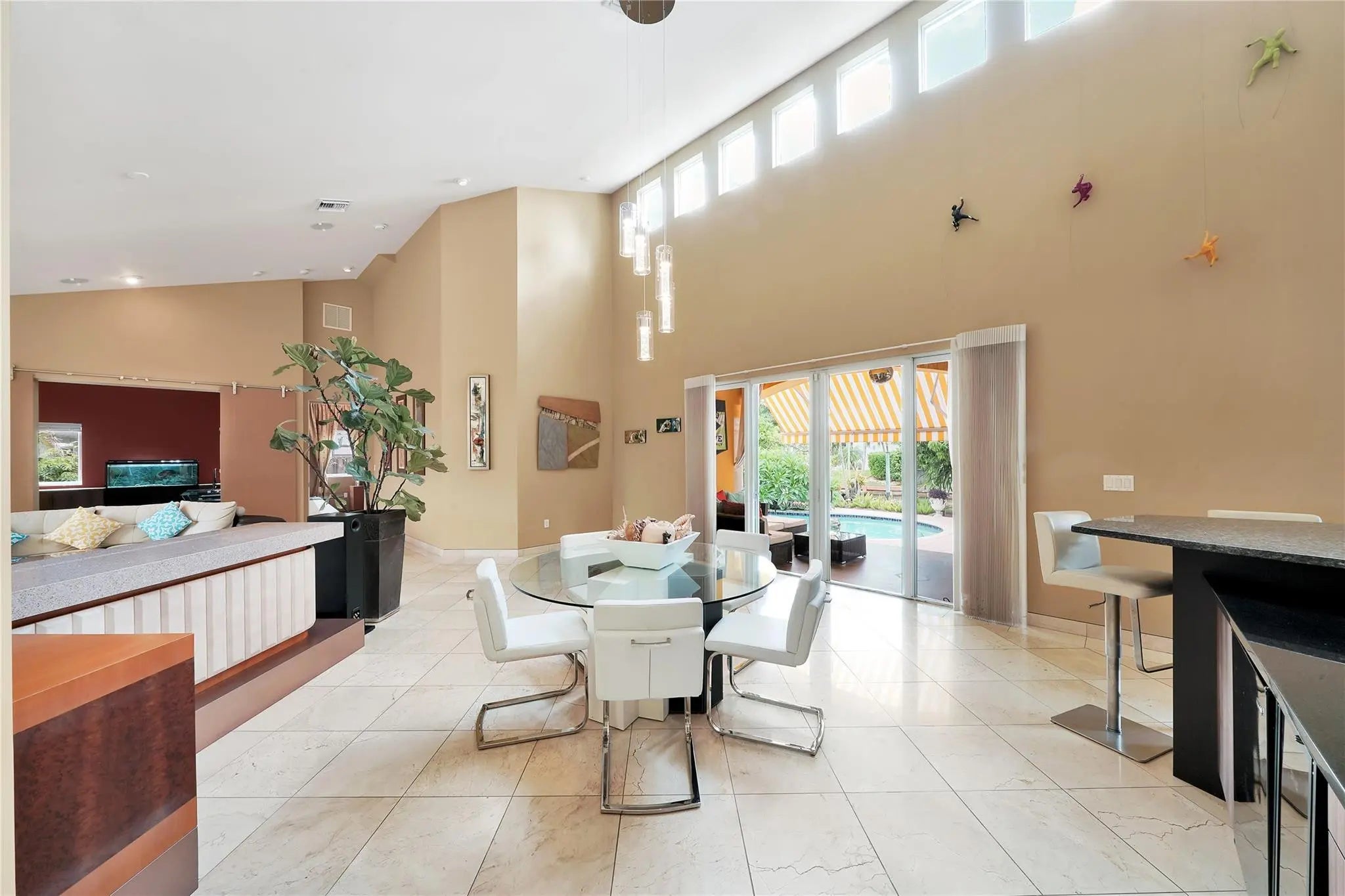 Experience modern waterfront living in this 2008 custom home by Haas Construction and James Drago. This 3BD/2.5BA features 20’ ceilings, stone and wood floors, and a RAISED FOUNDATION built to newer flood standards. The chef’s kitchen includes zebra wood cabinetry, blue pearl granite, Miele appliances, and a Thermador fridge. The serene primary suite offers a jacuzzi tub and steam shower. Entertain at the ebony wet bar or outside by the 30x16 pool and covered patio. 85 ft. of deep water, no fixed bridges—with outdoor space ready for South Florida living!