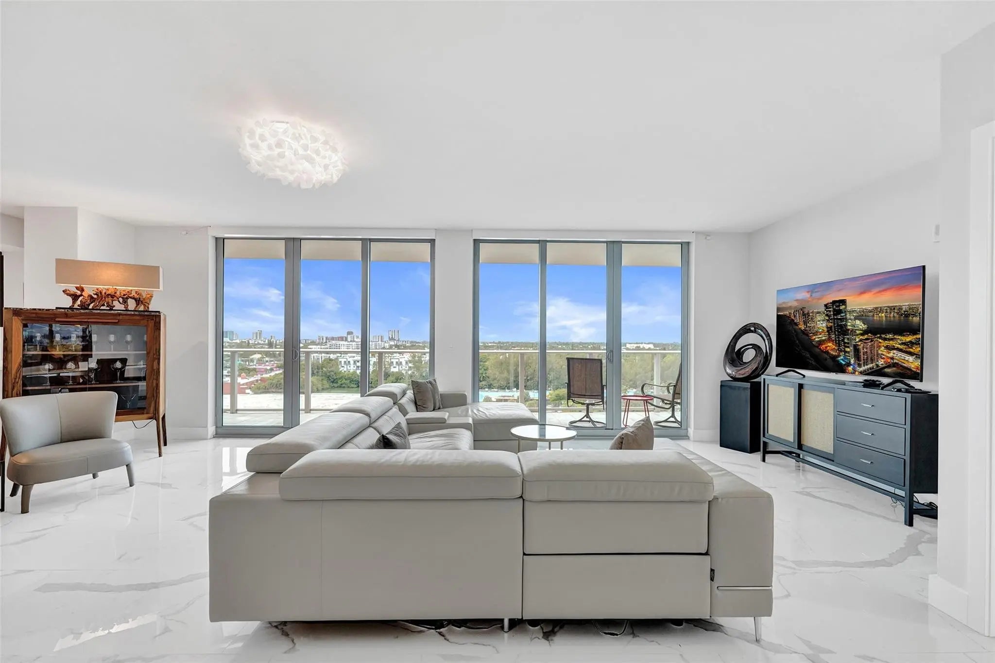 Modern chic 2 bed 2 1/2 bath residence with high-end finishes throughout. Kitchen includes Italian cabinetry, quartz countertops, Sub Zero & Wolf gas cooktop appliances. Floor to ceiling glass combined with a thoughtfully designed floor plan make this residence ideal for entertaining. Enjoy beautiful sunsets, city and skyline views from your 72 foot private balcony with BBQ. Spacious owners suite features a large walk-in closet, dual vanities and a luxurious seamless shower tub combination. Dedicated walk-in laundry/utility room with storage and sink. Private parking & storage. 40,000 square feet of resort style amenities: Waterfront pool, massive gym, Yoga/pilates studio, spa, steam & sauna rooms, Jacuzzi, 2 dog walks, 24/7 front desk attendant, Valet, Boat slips available.