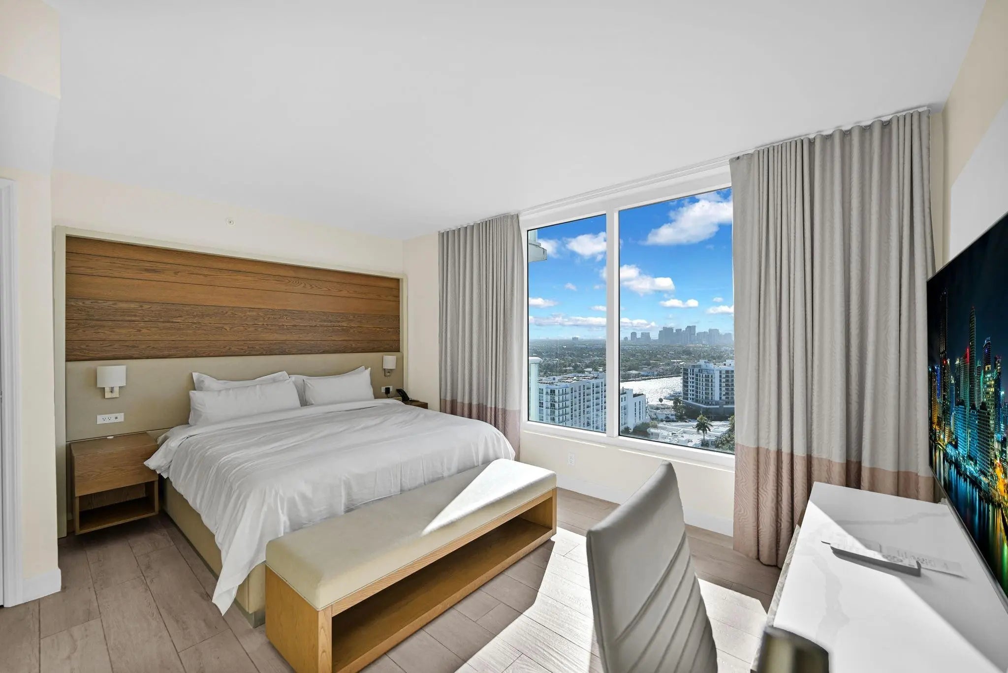 Vacation on Ft Lauderdale Beach! Experience resort-style living from this high-floor, fully furnished 2-bedroom condo in a premier beachfront condo-hotel. Bathed in southern light and boasting ocean views, this beautifully appointed condo features a versatile lock-out suite. Offering a wrap-around balcony, floor-to-ceiling impact windows, owner's closet, dual sinks in the primary bathroom, and fully equipped kitchen, this condo . Owners enjoy first-class, resort-style service with hotel amenities including restaurants, bars, 24-Hour fitness center, spa, tropical pool deck, room service, and complimentary valet parking. Optional rental program managed by Hilton. Step inside and feel instantly transported to your own private coastal retreat.