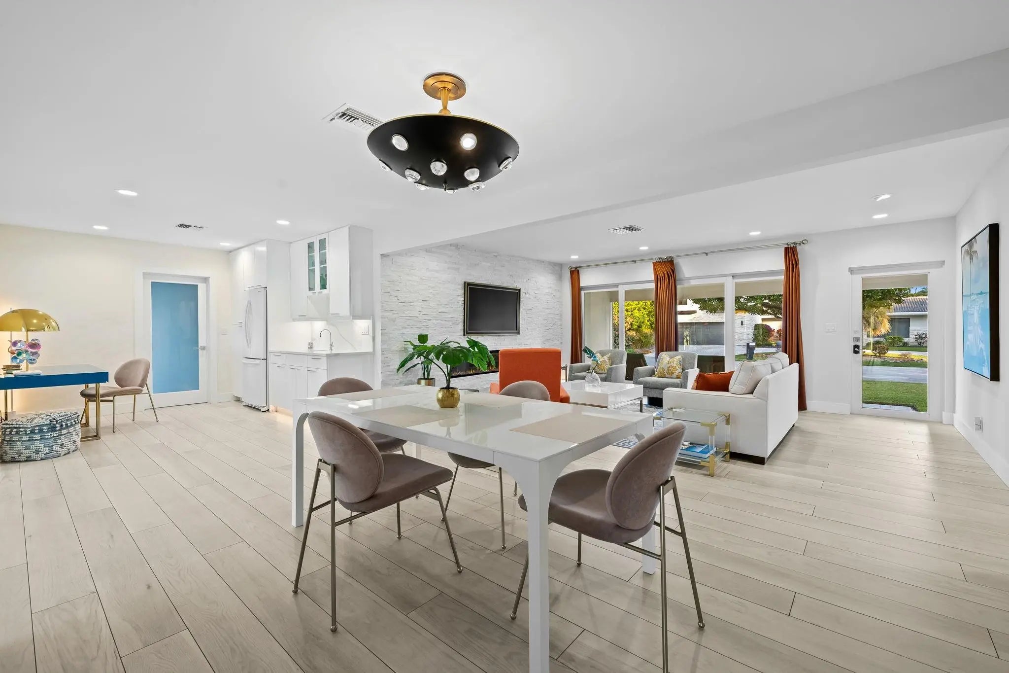 A stunning home in East Fort Lauderdale's best kept secret, Bal Harbour.. This single-level dream home feels like new construction. Two private wings, all 4 bedrooms ensuite, complemented by elegant Italian flooring throughout. The chef’s kitchen boasts a 10' ceiling, custom cabinetry, a gas range, and a stunning Caesarstone waterfall island. Expansive sliders create seamless indoor-outdoor living, opening to a covered firepit lounge. Indulge in a saltwater pool with fireplace, outdoor shower, and magnificent Sylvester Palms. Private dock w' boat lift offers ocean access via Middle River’s single fixed bridge. A two-car garage, indoor laundry, street-gas and updated electric & plumbing. Conveniently located by Whole Foods, Publix & Trader Joe's and minutes to the beach and airport.