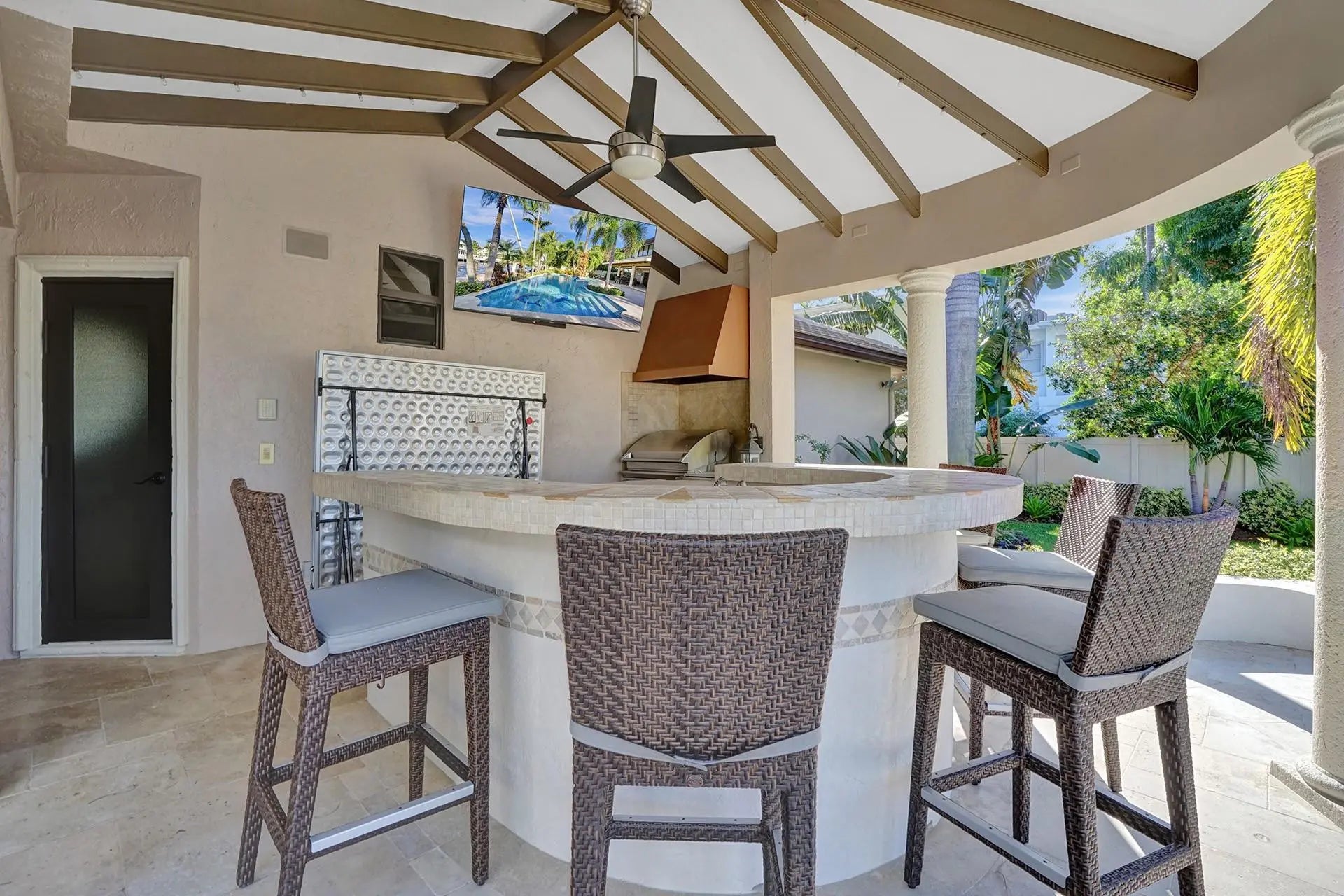 Live in luxury on Las Olas Isles with a beautifully appointed 5 bedroom, 5 bath modern residence featuring 100' feet of deep water frontage and ocean access. Some features include, marble flooring throughout, tons of natural light, open living space, huge chefs kitchen and a spacious primary suite overlooking the water. Home has a perfect blend of comfort and elegance. Enjoy resort-style outdoor living with an expansive patio, pool and outdoor kitchen. Property is surrounded by lush landscaping and just minutes to the beach, dining and downtown/nightlife. Walking distance to Las Olas and the beach make this rental a prime choice. Bring your water toys and enjoy ALL Fort Lauderdale has to offer. Call to schedule a private showing today! ANNUAL LEASE PREFERRED. HOME IS FULLY FURNISHED.