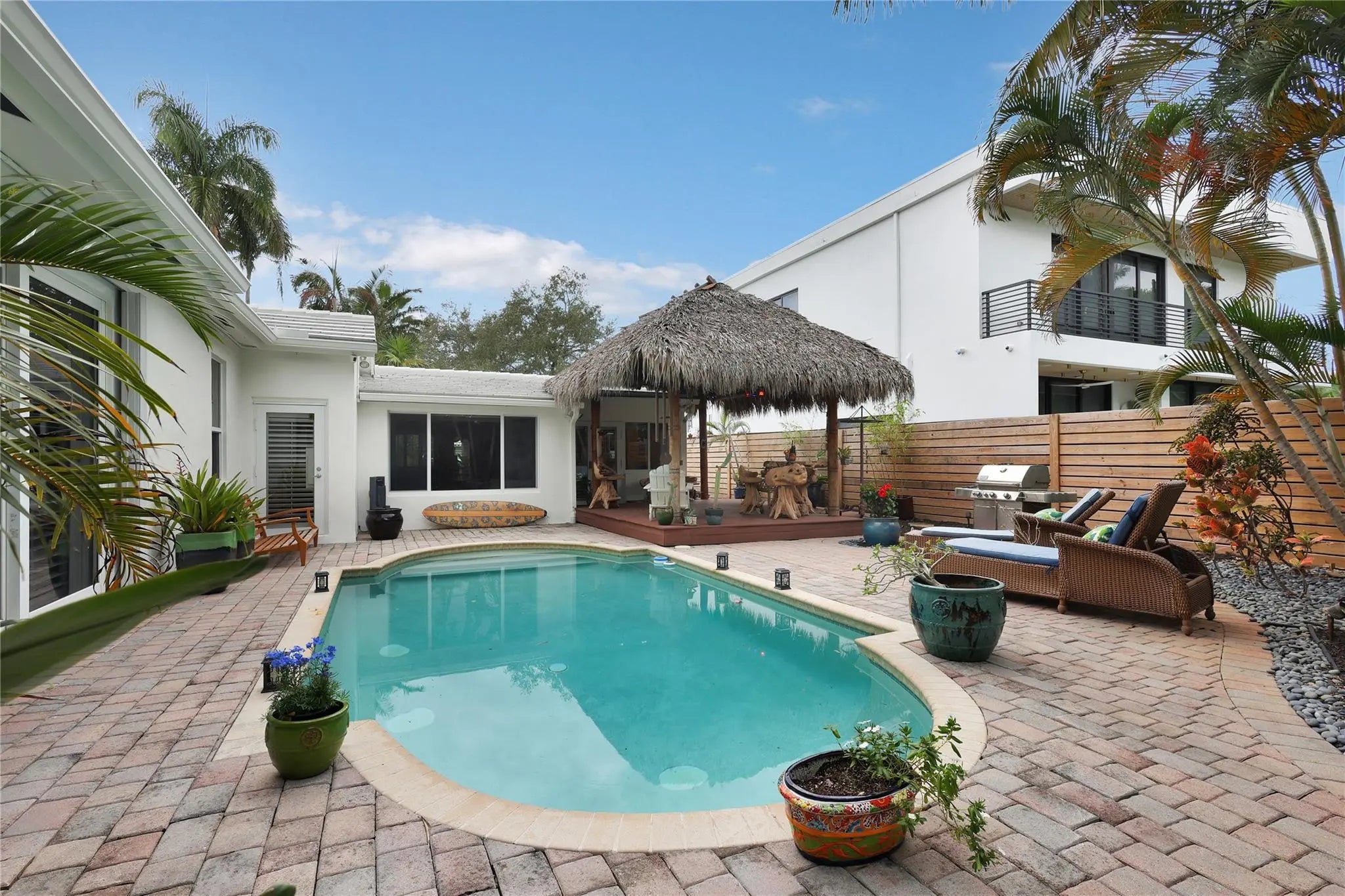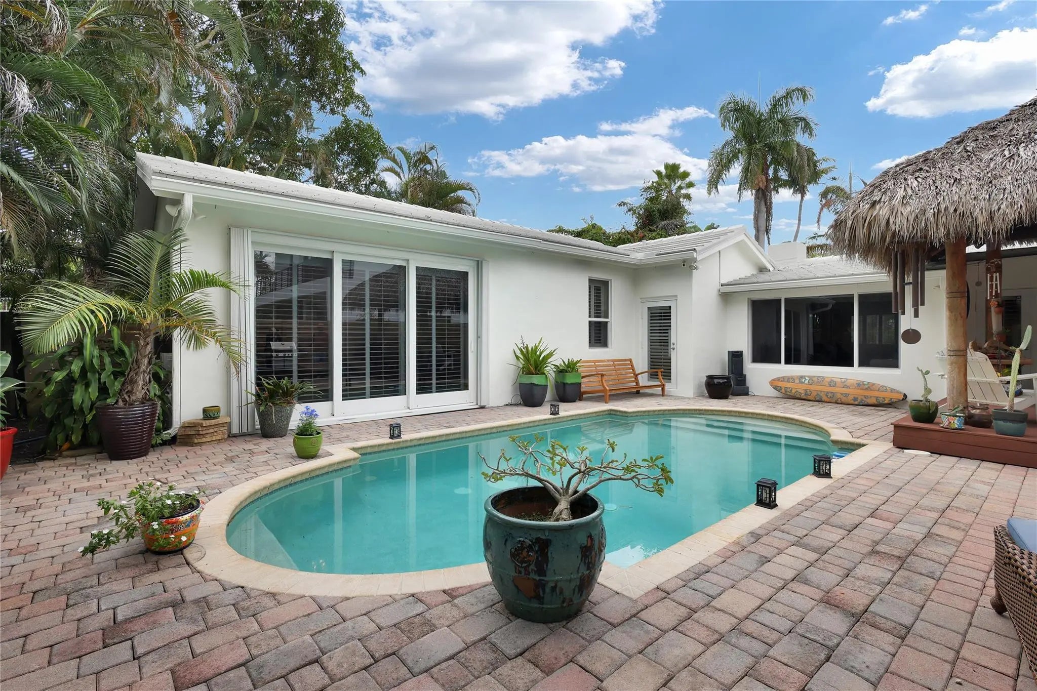 This Wonderful Victoria Park mid-century 3/2 home has a huge poolside primary bedroom with a spacious spa style bathroom and two walk in closets. There is a large eat in modern chefs’ kitchen with stainless appliances and walls of cabinets and storage space. Additional highlights include high ceilings, fireplace, open floor plan, wood floors, tile roof, impact windows and doors, covered carport, and an amazing resort like back yard with full size pool and covered tiki hut for those fun days of entertainment. Located on a great terrace close to the beaches, las olas, airport, parks, schools, restaurants, shopping, brightline, airport and everywhere you want to be… come see !!
