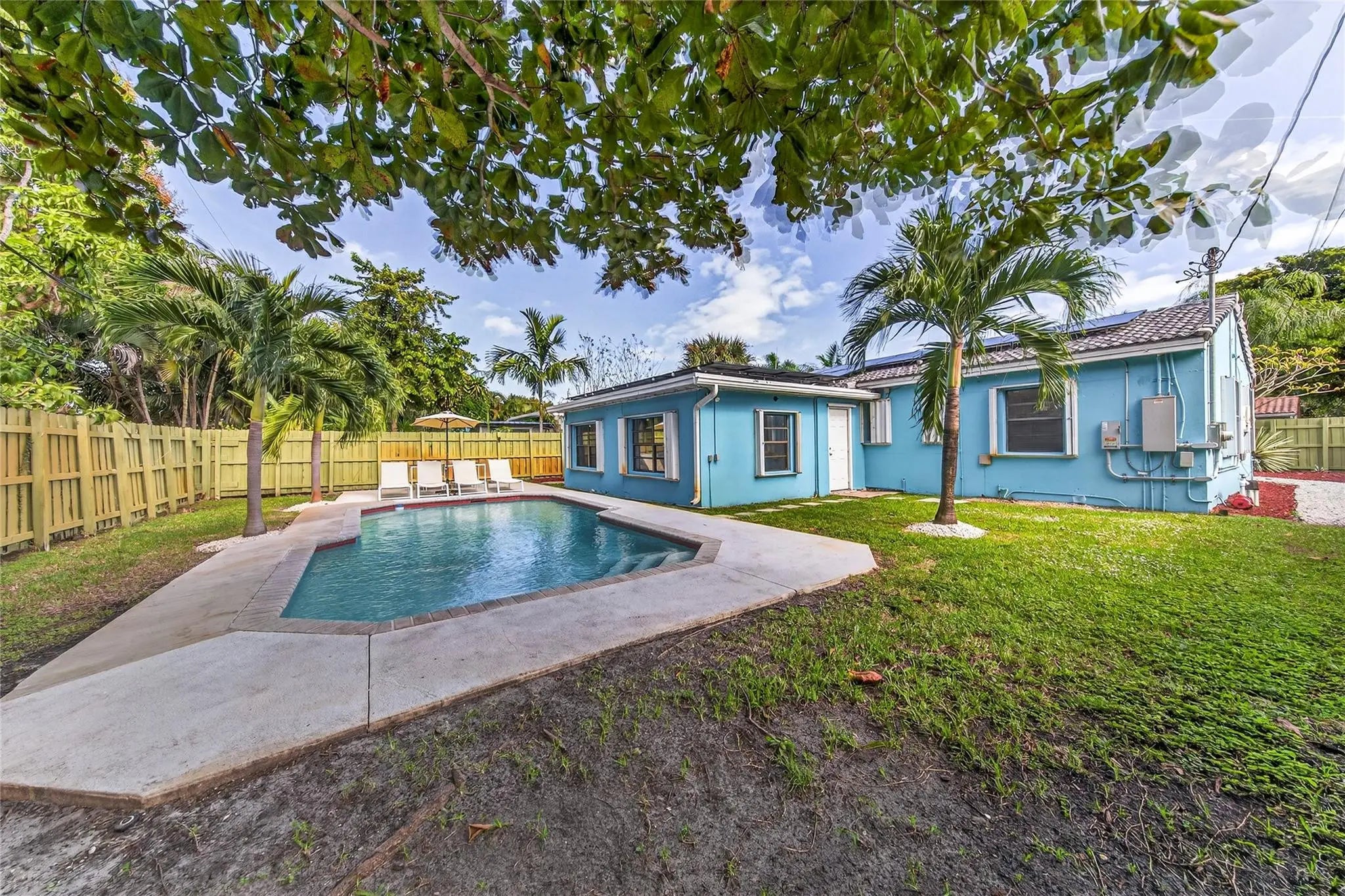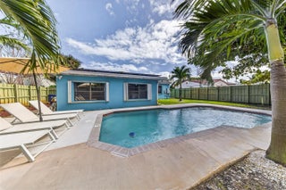 Come see this solar-powered 3 bedroom/ 2 bath home with lovely Pool, Carport and Screened porch/Florida Room. Relax and entertain in your Private backyard and pool surrounded by tropical vegetation. Property is fully fenced. Carport and driveway space for three cars. Solar panels on the roof help defray electrical costs. Very large primary bedroom suite with built in closets and storage and a large ensuite bath with a tub and separate shower and full-sized laundry and a view of the pool. Located on a quiet street in close proximity to Wilton Manors, downtown Fort Lauderdale. Short drive to beach, airport and highways. Near new Gardenia townhouses. Furniture negotiable. Currently operating as an Airbnb.
