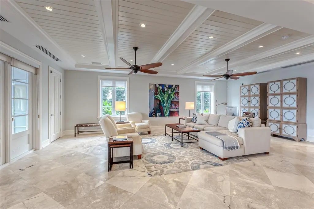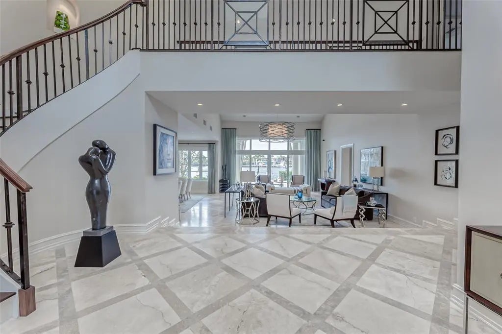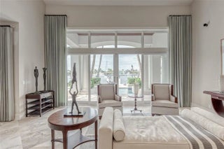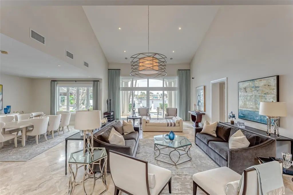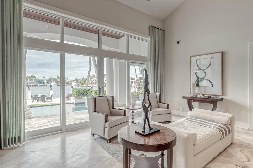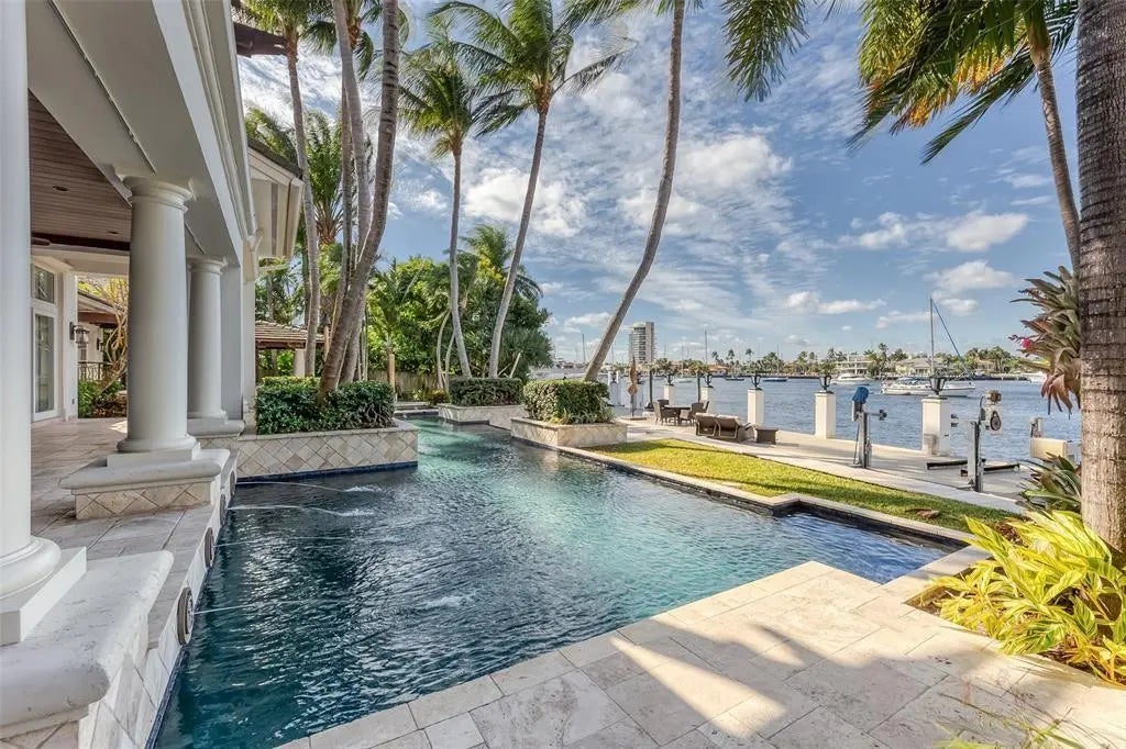 AVAILABLE NOW FOR ANNUAL LEASE BEGIN JAN. 15!! Spectacular unobstructed views of Lake Sylvia in exclusive HARBOR BEACH! Completely renovated 8,000± sq ft waterfront estate featuring 112 FT OF DEEPWATER FRONTAGE WITH 2 BOAT LIFTS, 9 bedrooms, & a resort-style heated pool & spa! Expansive covered outdoor living areas, balconies, water features, & full outdoor bar ideal for entertaining. Highlights include media room, maid’s quarters, private office, and chef’s kitchen. Luxurious primary suite offers a large balcony with panoramic lake views, lush tropical landscaping, and stunning sunsets! Soaring ceilings and open floor plan. FULLY DESIGNER FURNISHED and move-in ready. Situated on nearly ½ acre, this private waterfront retreat offers true resort living. MASTER BATH FULLY RENOVATED!