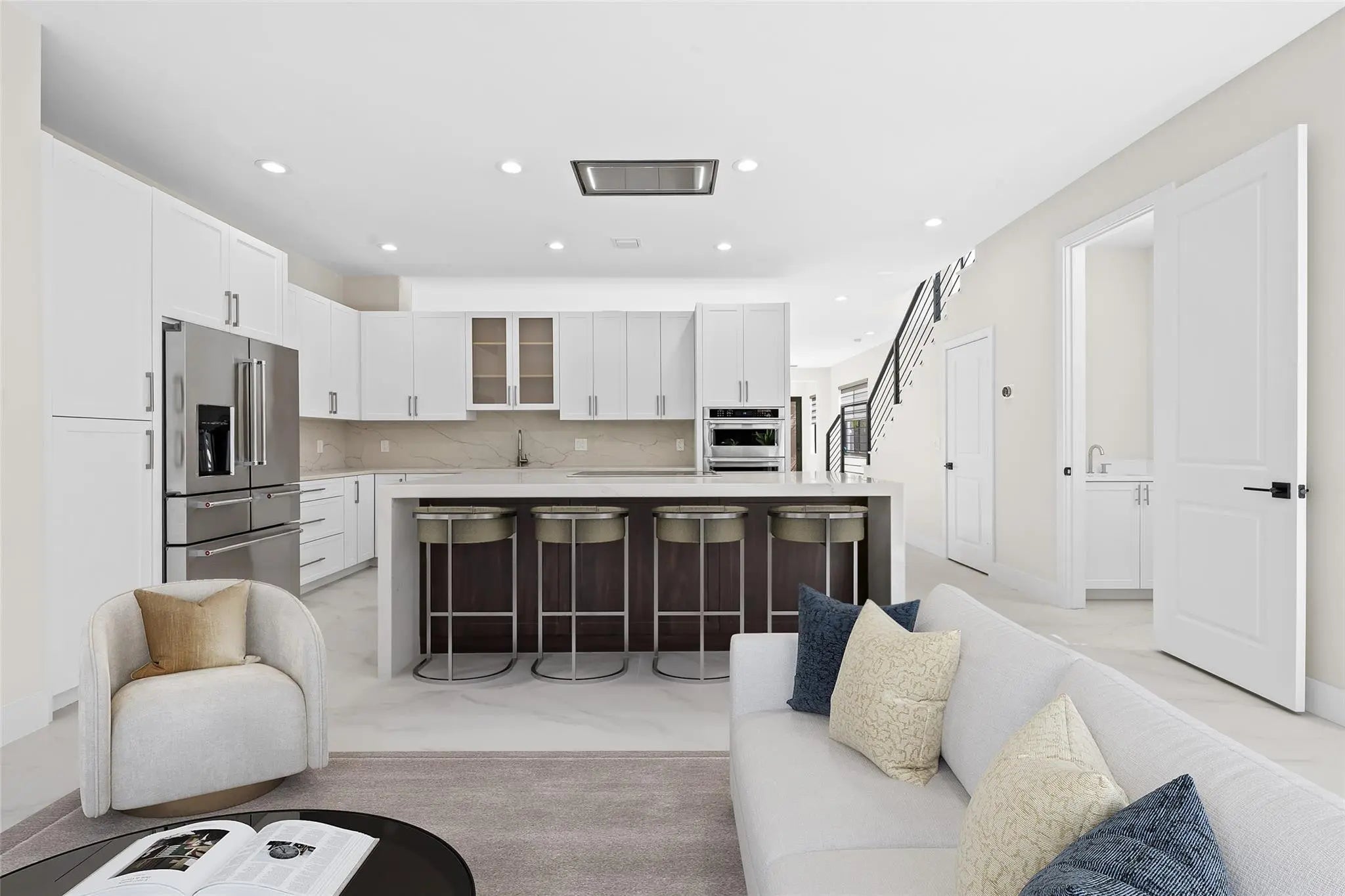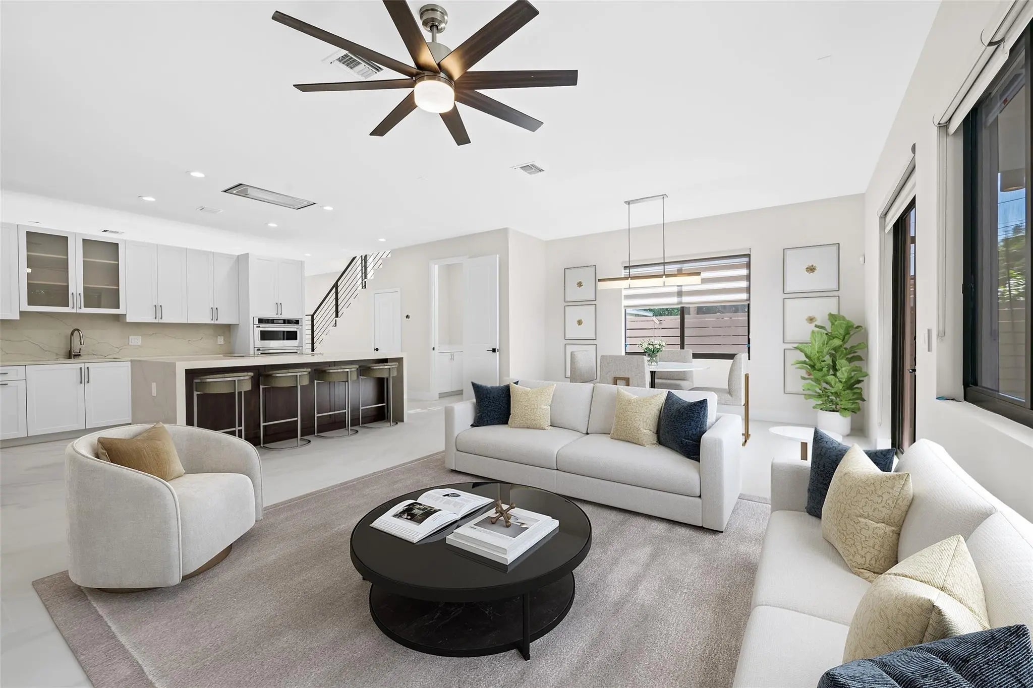 Experience modern comfort in this Contemporary Updated Townhome, complete with a brand-New Roof. Bright, open interiors with volume ceilings flow from the spacious living room & dining area into a well appointed chef's kitchen with upgraded appliances, tremendous storage options/cabinet spaces & a large island perfect for everyday use or entertaining. The kitchen opens onto the spacious family room & breakfast area. French doors access the private backyard with a sparkling pool, relaxing cascading waterfall & a wide patio ideal for outdoor living. The primary suite features a spa-style bathroom, a large custom walk-in closet & a private balcony overlooking the pool. 2 additional en-suite bedrooms offer great storage & share a second balcony. Convenient 2nd floor laundry. Sq Ft per IMAPP.
