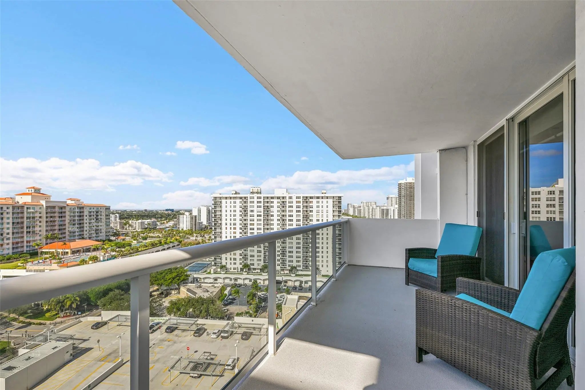 Spacious 2BR/2BA condo on the 18th floor with city and Intracoastal views from every room. This 1,100 SF residence offers light tile flooring, textured ceilings, and a kitchen with white cabinetry and light countertops that opens to a dining area with an eclectic chandelier. Both bedrooms feature floor-to-ceiling hurricane impact windows, filling the home with light. The primary bedroom includes a walk-in closet. Enjoy a private balcony with sunsets to take your breath away and yachts passing day and night. In-unit washer/dryer. Building undergoing a $20M capital improvement project for its 50-year recertification. Amenities include a rooftop pool and fitness center. Steps from a brand-new Publix and a short walk to the beach, shopping, and dining.