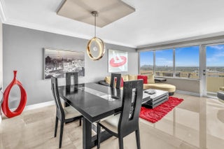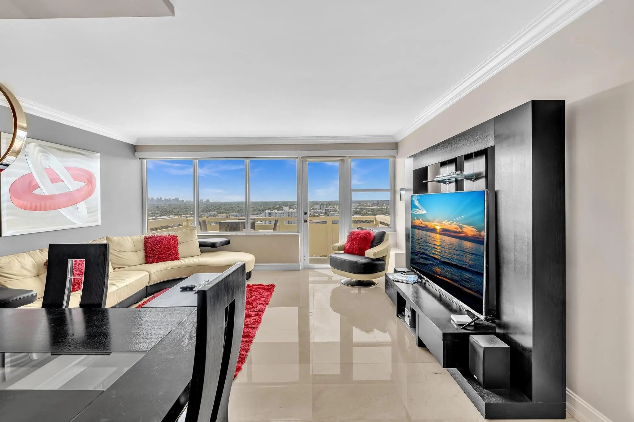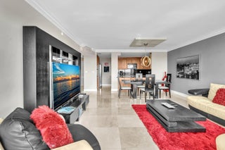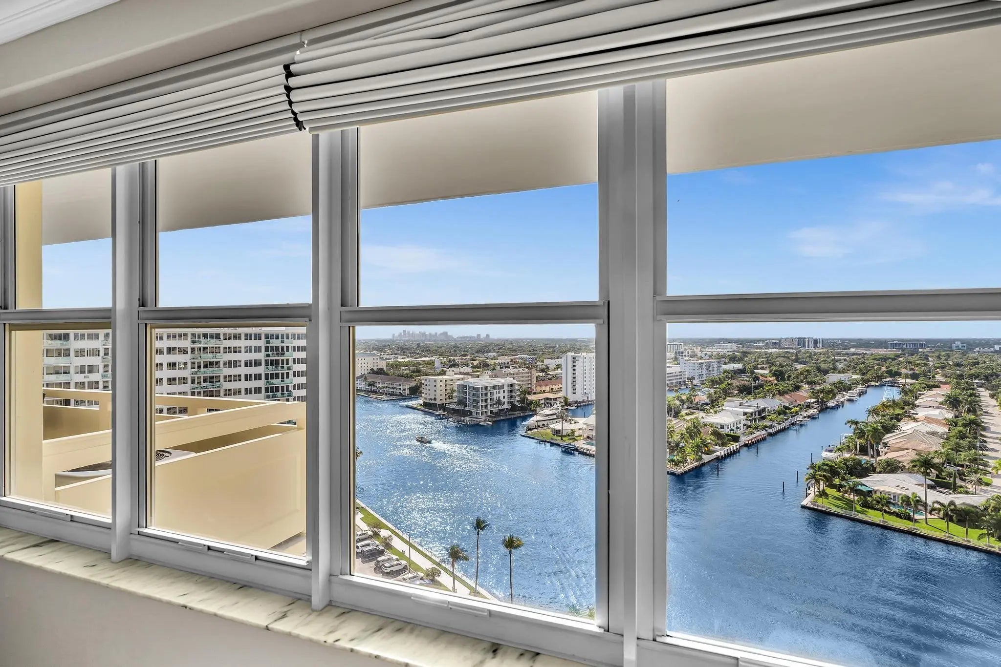 Spectacular, Panoramic Views - 55+ Community 2-Bedrooms / 2-Bathrooms, 1,120 sq. ft. on the Intracoastal! A beautiful remodel unit with marble floors throughout, spacious kitchen opens to the dining and living rooms creating a large living area suitable for family gatherings and entertaining friends. The bathrooms are completely renovated. The unit has also been updated with a high impact balcony door and windows. The contemporary furnishings and decor are included in the sale. Resort-Like Amenities Include - Community Heated Pool, Fitness Center, Community Room, Shuffleboard, Library, BBQ Area, Car Wash Area, Bike Storage, EV charging, and 24/7 Security. Walking distance from the Beach, Grocery & Pharmacy Stores, Shops, Restaurants and Nightlife!
