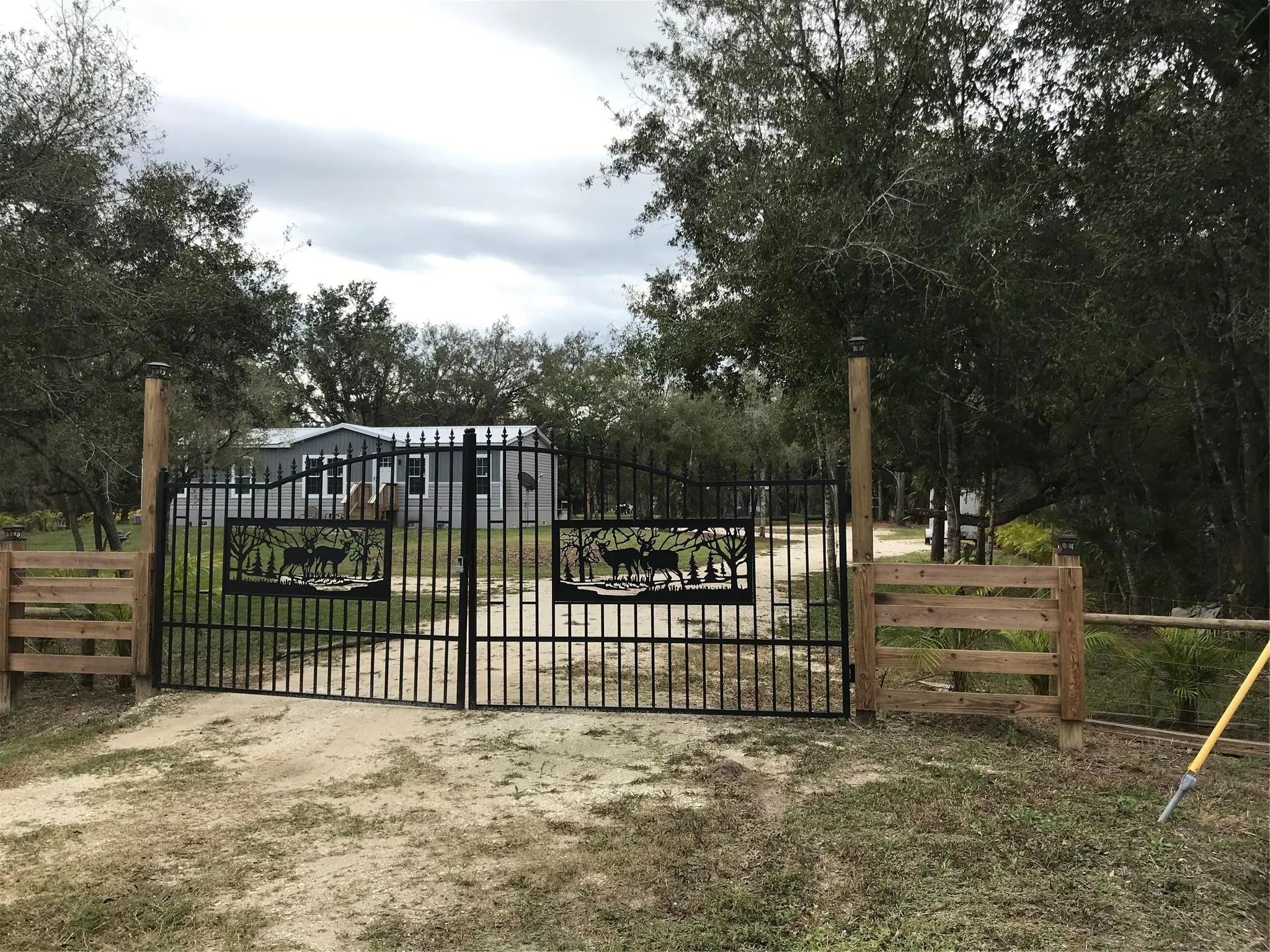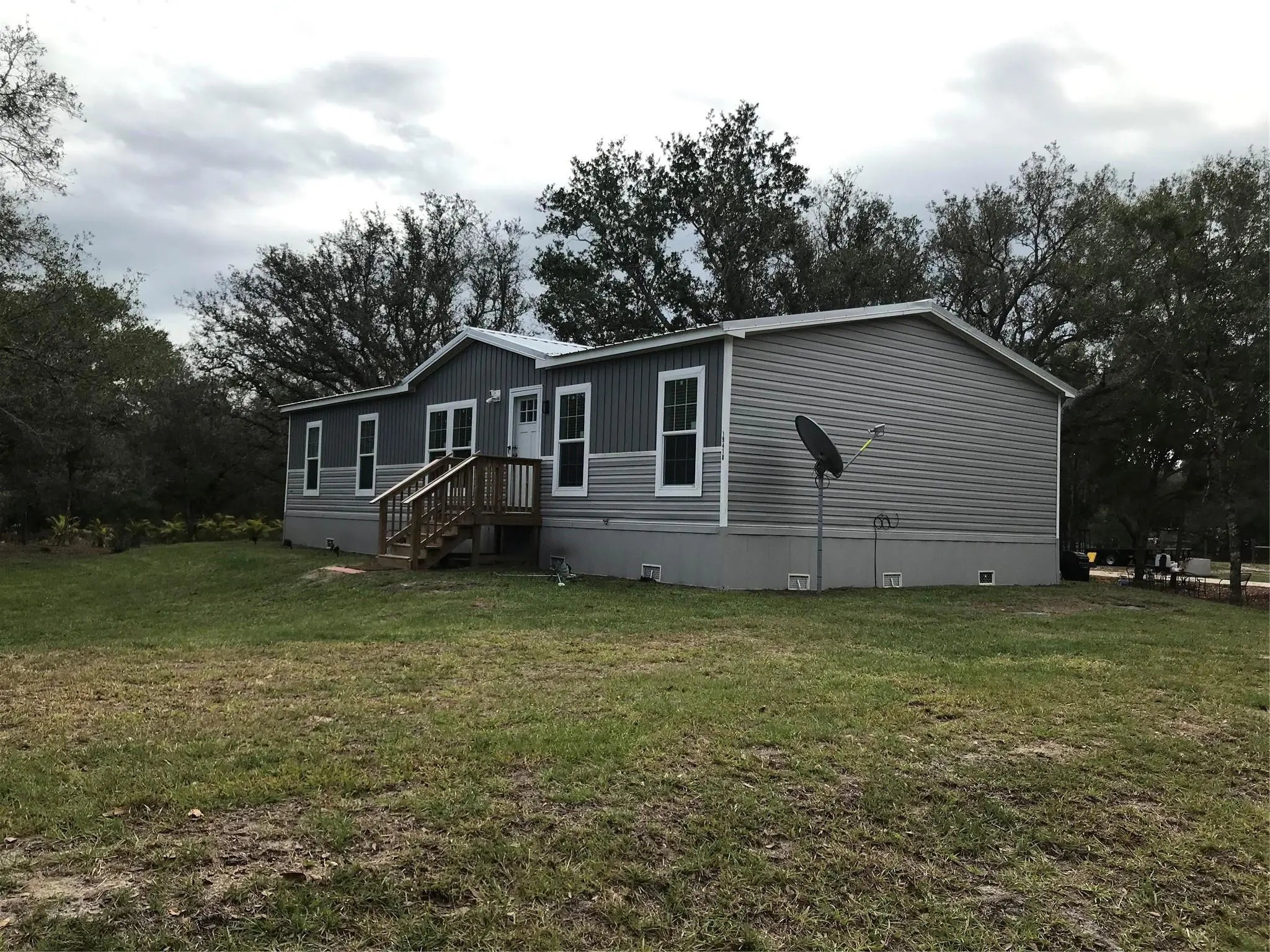 “LITTLE HOUSE ON THE PRAIRIE” This 2024 TURN KEY 3 bedroom / 2 full bath 1456 sq foot home is sitting peacefully on 1.25 acres of nature. The home features an open concept layout with spacious living area along with a 3 bedroom split. Huge kitchen island, stainless steel appliances, ceiling fans and laminate floors throughout, crown molding and a Metal Roof are just some of the many upgrades. Step outside to the beautiful property with mature Oaks and palm trees planted as a barrier to the already completely fenced yard. 20 X 30 carport along with serene fully stocked pond that adds a picturesque touch, ideal for watching the relaxing sunrise, sunsets and wonderful wildlife. Don’t forget your ATV to join the fun. Call for your appointment today. All measurements are approximate.