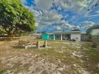 Beautiful home located in highly desirable Gomez St area of Hobe Sound, near the beach, shops, restaurants & schools. The open-concept features a spacious family room and kitchen, complete with an eat-in area and breakfast bar. French doors lead to a covered porch. The backyard includes a versatile he/she-shed with a wood deck to relax under the shade tree, along with the beginnings of a bar area with stools & ready for you to finish, perfect for entertaining. And the fire pit with benches create a cozy space to enjoy those cooler winter evenings. Originally a 3/2, the seller remodeled the home and converted the smaller third bedroom into a primary closet & an additional sitting area with french doors to the backyard. This property is full of charm, you won’t be disappointed.