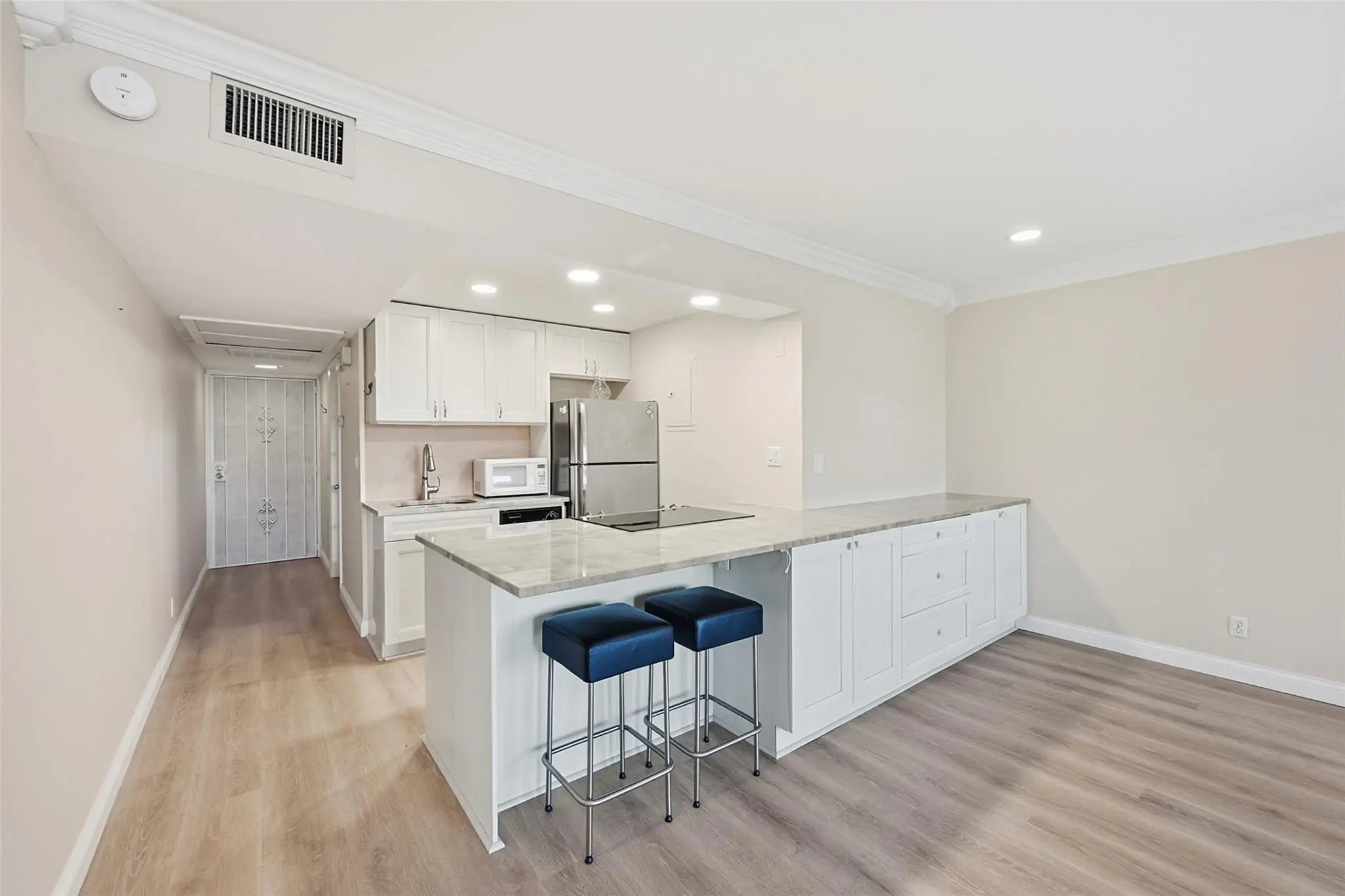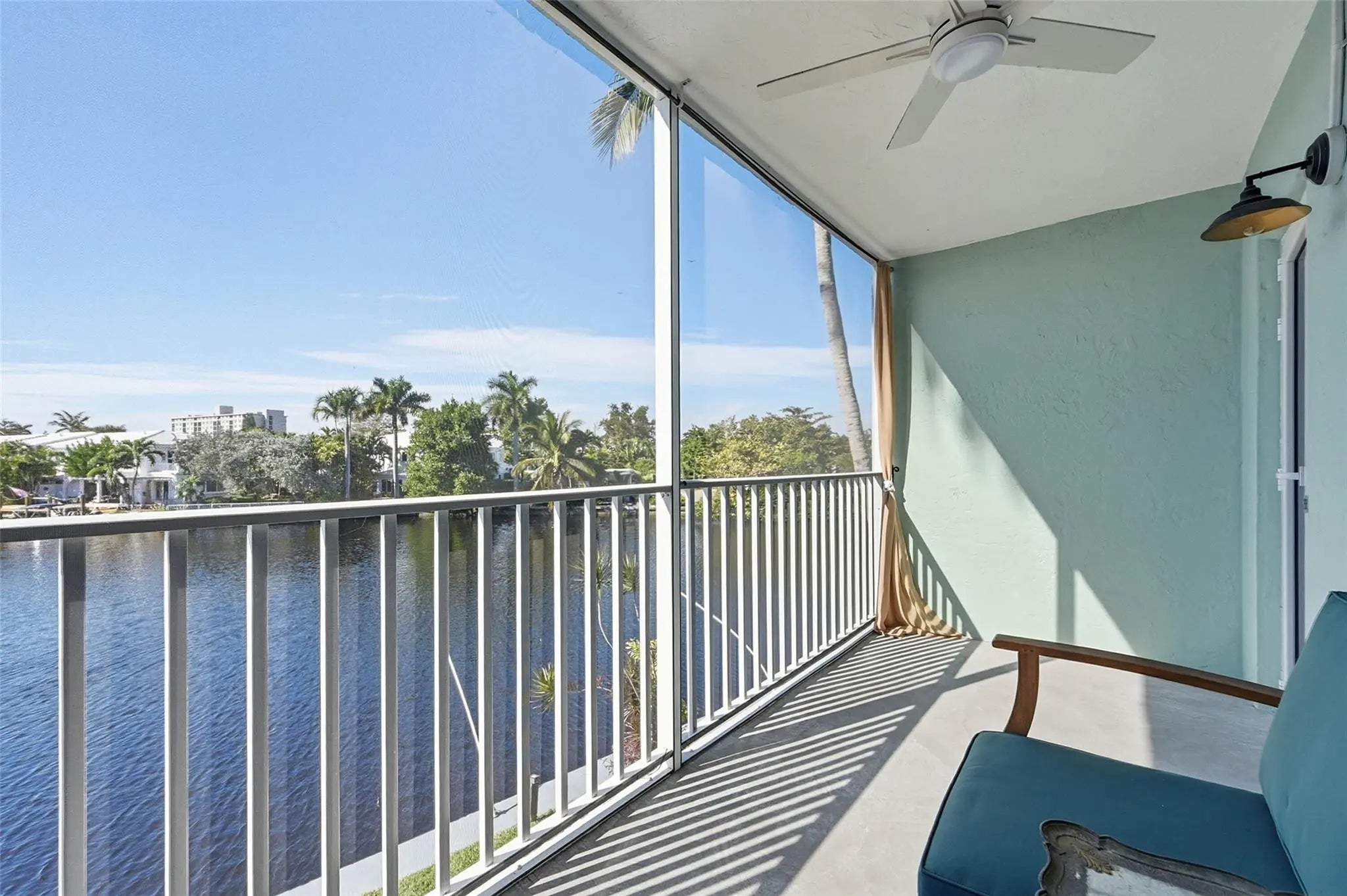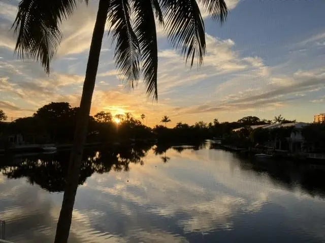 Enjoy theatrical sunsets every single day from the tranquility of your own private, spacious, screened balcony overlooking the Middle River! This tastefully updated 2/2 with over 1,000sq. ft, has a bright open kitchen and living area, with high-end finishings such as touch-free kitchen faucet and dimmable lights, an oversized double-spouted Italian style shower and two walk-in closets for the primary bedroom that boasts the most beautiful river view. A very rare find nestled in Middle River Terrace a short stroll to Wilton Manors.Spend your afternoons relaxing at the pool on our luxurious sun chairs right on the river and animate your evenings strolling on the Drive in Wilton Manors! Other perks Include a BBQ area and 2 private parking spots located 20ft from the main entrance.