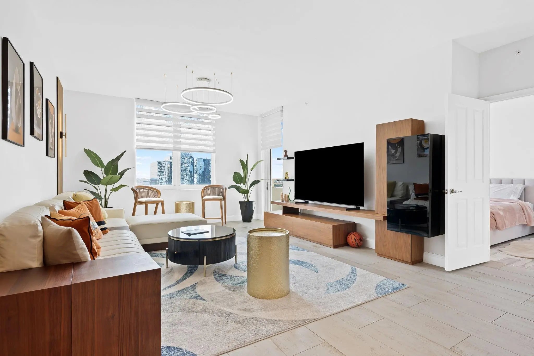 Welcome to an investors dream, positive cash flow day one! This masterpiece RENOVATED and BRAND NEW designer furnished 2bed 2bath has beautiful southern views of the city and ocean views. Wood-look tile flooring throughout, stainless steel appliances, granite countertops, and fully renovated bathrooms. Amenities: rooftop pool, fitness center, 24hr security & valet, indoor basketball & racketball, front desk, gas BBQ grills, meditation garden, jacuzzi, cold plunge, massage room, business room, library, and more. *** Tenant Occupied until Jan 2027 @ 3600/month. Perfect for a savvy investor especially since the current tenant uses the unit infrequently and as such the upkeep of the apartment is pristine as a result.*** GREAT DOWNTOWN LOCATION