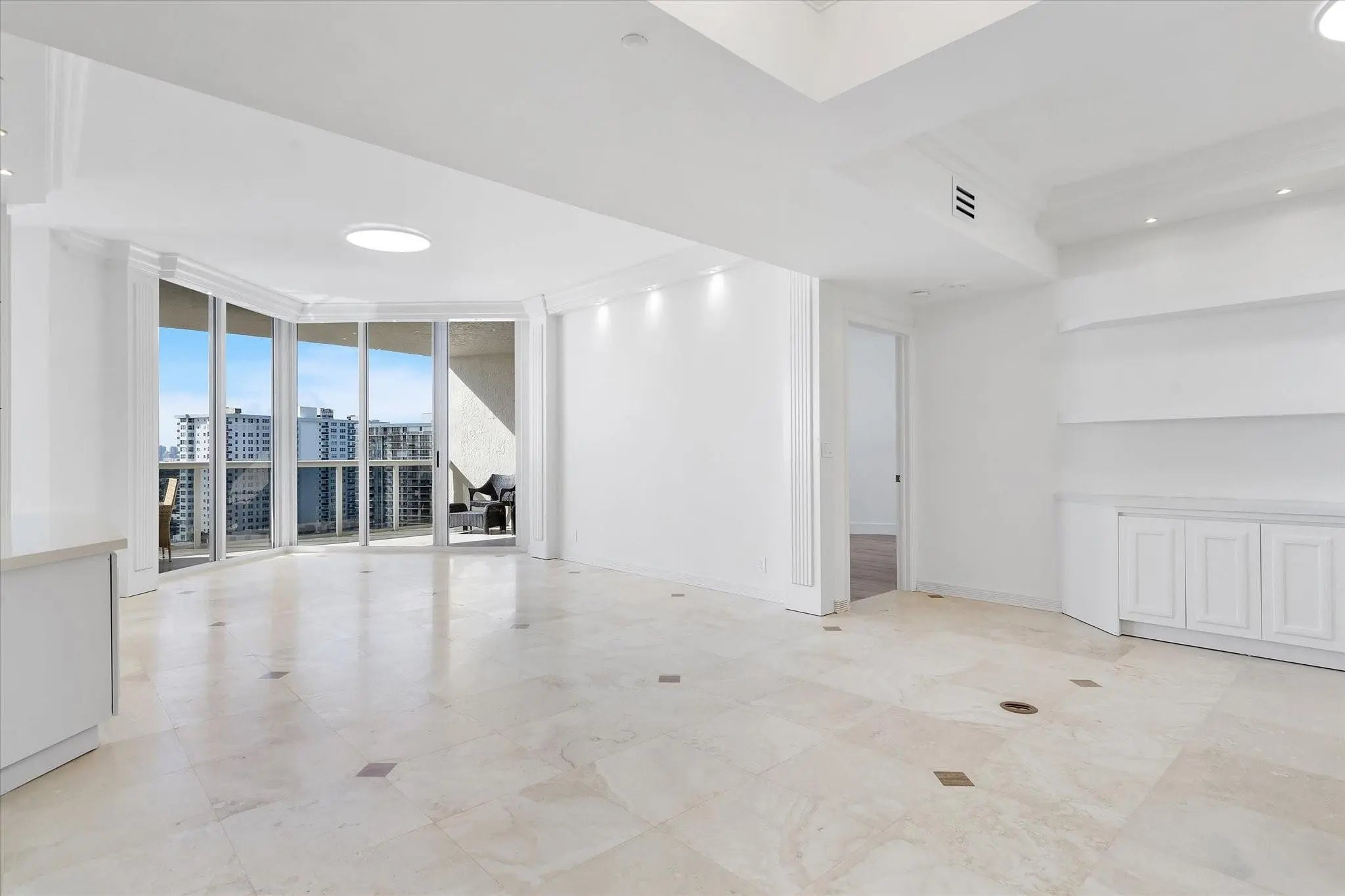 Southeast Ocean and Coastline views from recently updated 2/2 at L'Hermitage. New flooring in bedrooms, new countertops, new appliances. Fairmont model at L'Hermitage features split bedroom plan with large den with office built in. Built in buffet in the living room. Large balcony with 3 sections. Very private views of the ocean. EASY TO SEE. L'Hermitage is over 10 acres of Oceanfront/Beachfront property w/tennis, fitness, fenced complex, saunas, steam rooms, massage rooms, attended beach, pool deck with spas and full-service restaurant including full bar. BBQ grilling area beach level. Amazing walkability & pet friendly. Minutes to Las Olas. Strong reserves, Pets OK, Recent structural and integrity studies available.
