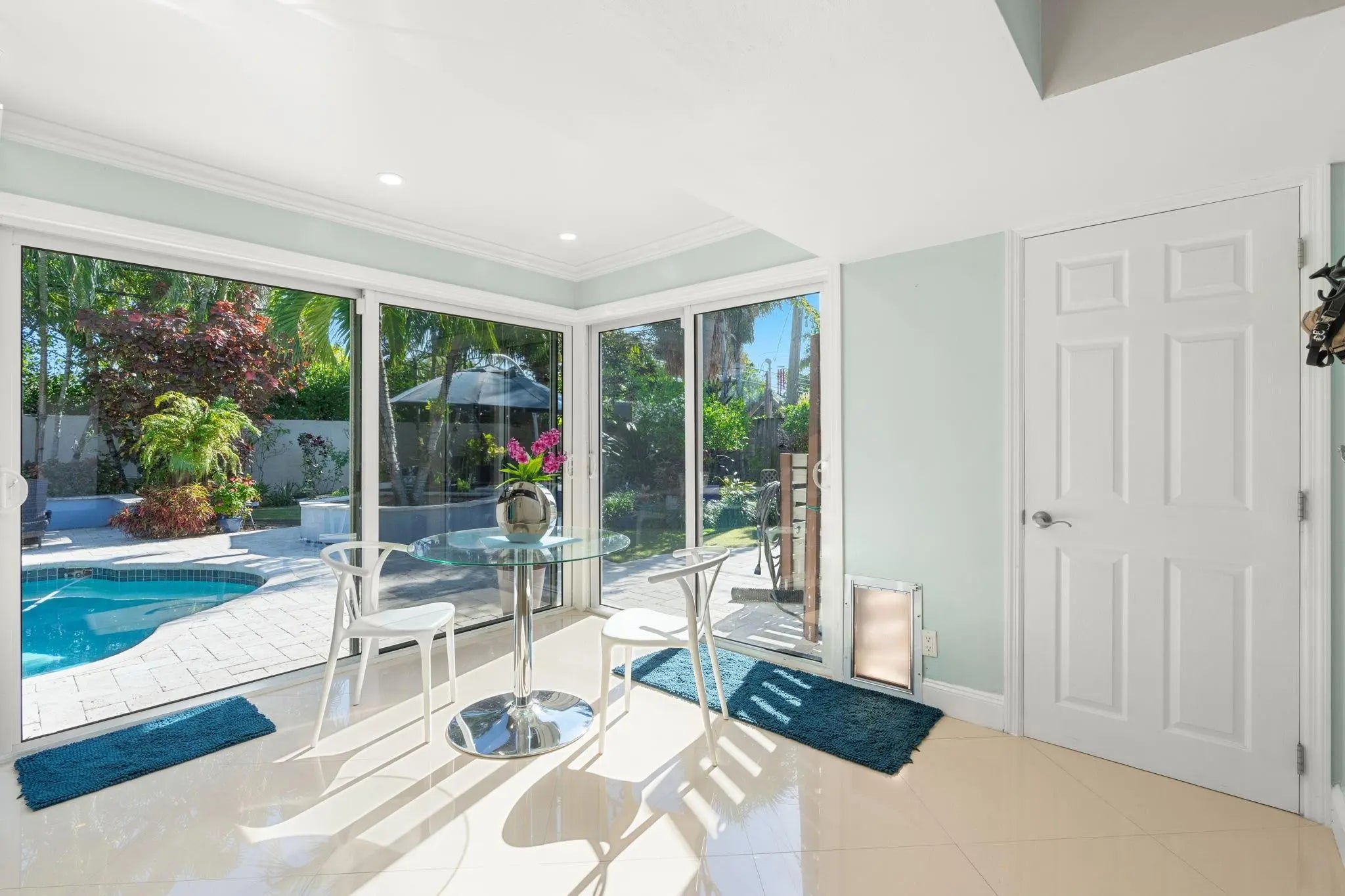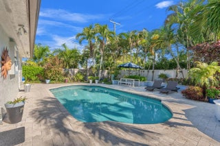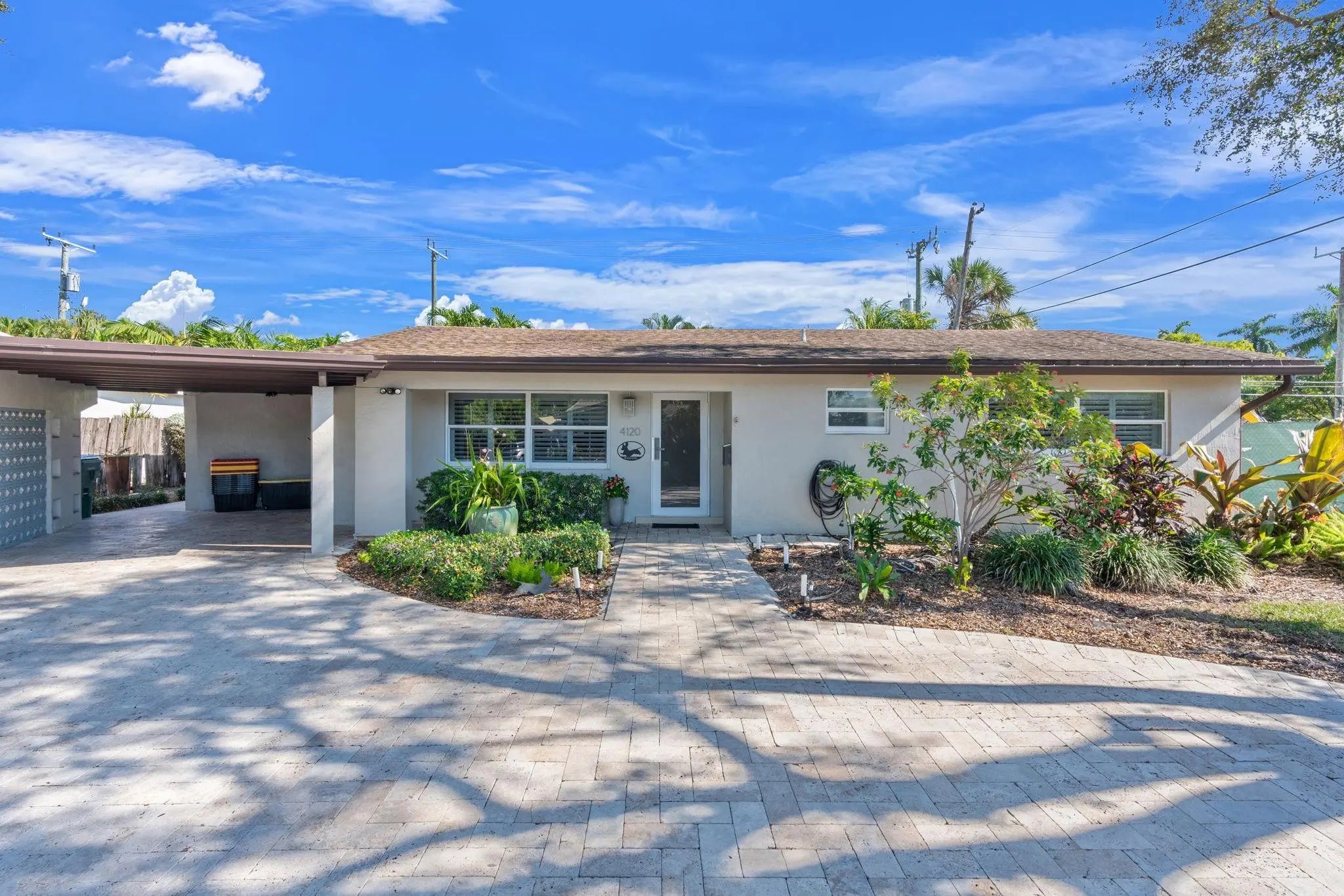 Beautiful, updated 3-bedroom, 3-bath home located in Coral Heights, Oakland Park. Open floor plan encompasses Chef’s kitchen with granite counter tops, SS appliances, island, gas stove and dinette offering views of landscaped back yard and heated pool; pool deck, walkways, driveway, and car port are ivory travertine tile. Large living area. Two split primary suites with walk-in closets and spa-style bathrooms (main primary with double shower/sinks). High ceilings, polished porcelain (ceramic) tile floors, and crown molding throughout; bedrooms are carpeted. Additional highlights: gas dryer, tankless water heater, impact doors & windows, large circular driveway w/ covered carport, camera system, front/back exterior outlets. Property resides on Holy Cross Hospital power grid.