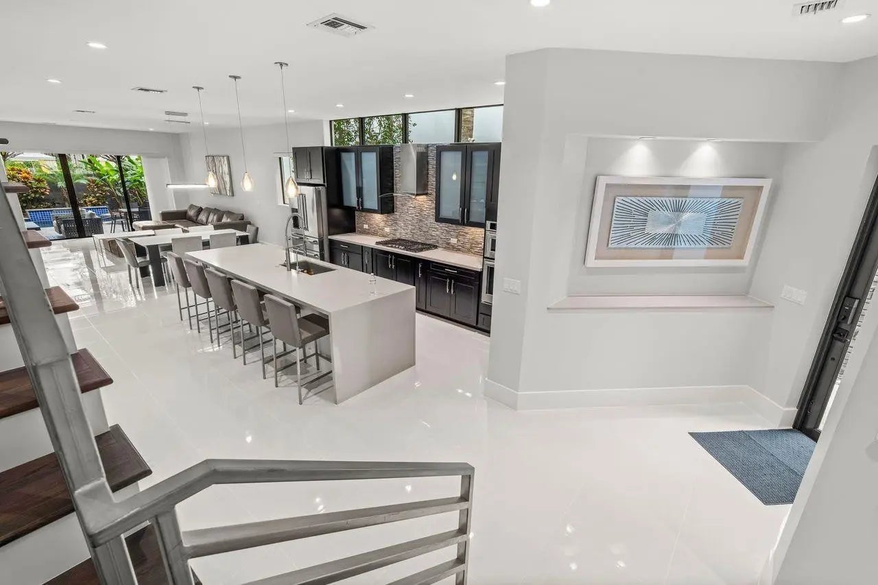 Luxury contemporary townhome located in prestigious Victoria Park. This home boasts 3 oversized bedrooms and a loft/den/office which can be a 4th bedroom, 3-1/2 baths, 2 car garage, large gourmet kitchen w/stainless steel appliances, double wine bar, gleaming porcelain flooring and wood flooring on second floor. Huge master suite w/separate balcony, large walk-in closet, large spa-like bath w/multiple jet shower. Amazing private tropical backyard w/beautiful pool w/waterfall and relaxing patio. Custom closets throughout, along w/added storage in garage. Built in security system, impact windows & doors, 10' ceilings, contemporary aluminum railings, and much more. Minutes to Fort Lauderdale's beaches, airport, I-95, and the famous stores and restaurants of Las Olas and downtown. Luxury living in this modern corner unit townhome set in E Fort Lauderdale’s coveted Victoria Park. Highlights include soaring ceilings, a bright open flr plan & a chef’s kitchen with Italian cabinetry, Bosch appliances, wine refrigeration & an oversized island made for hosting. A wall of sliding glass doors leads to a covered & screened patio overlooking a private backyard, creating the perfect indoor-outdoor living space. Upstairs features 3 ensuite bedrms & a flexible loft that can serve as a 4th bedrm or office. The elegant primary suite offers a custom walk-in closet & spa-quality bath. Additional perks include a 2-car garage with EV charger & 2nd-floor laundry. All just mins. from Las Olas Blvd, premier dining, shopping, the water taxi, parks & Ft. Lauderdale Beach. Sq Ft from IMAPPDriving Directions: GPS