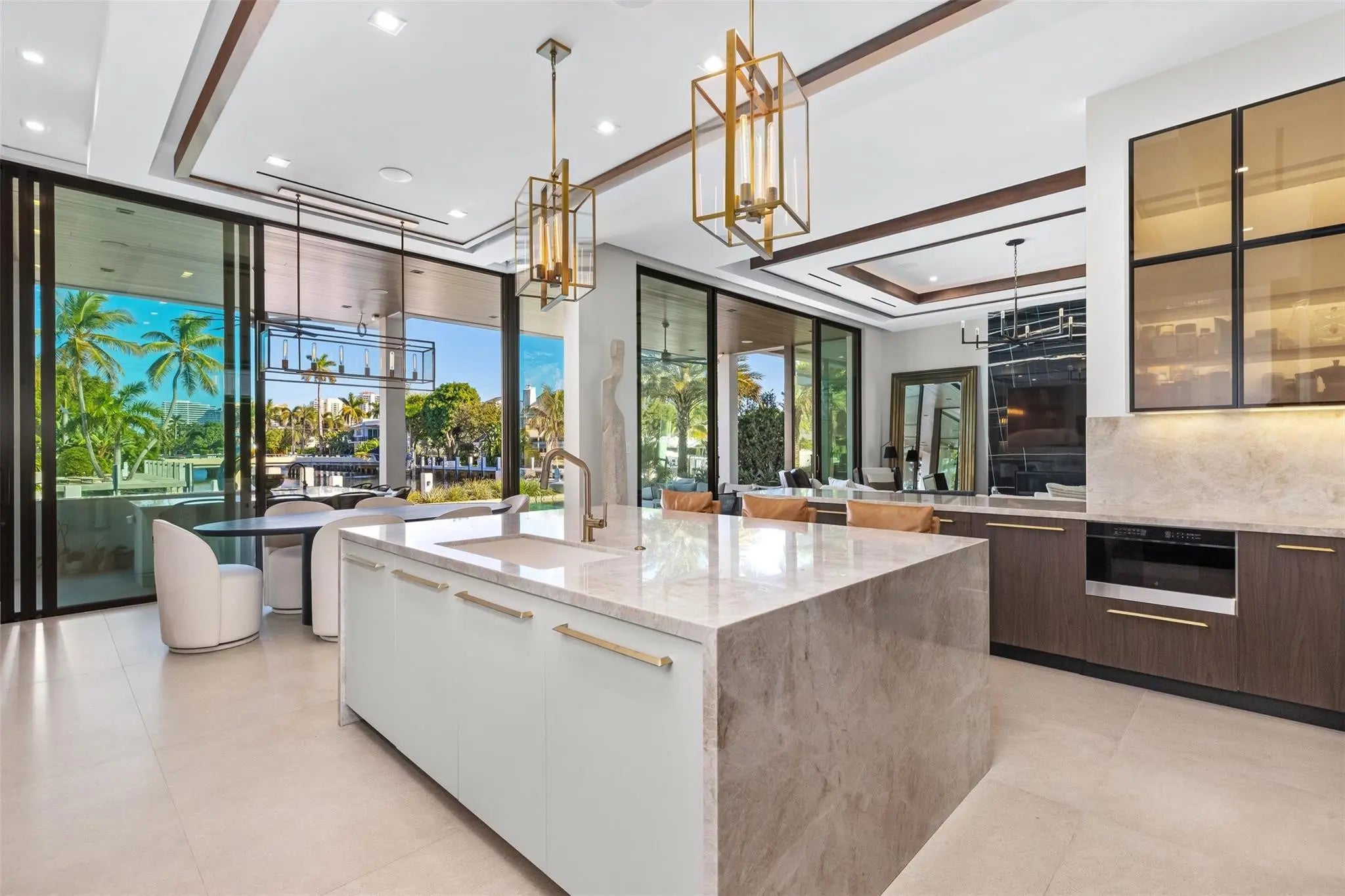Premiere Las Olas living meets new-construction luxury on one of the most coveted streets in the Isles w underground utilities & one of the widest, deepest canals. This warm contemporary Estate showcases a rare, long view straight down the waterway & sits on 100' w a new seawall, concrete dock & turning basin for easy ocean access. Find a double-height entry, 12' ceilings & top-of-the-line finishes throughout. An expansive first-floor primary suite anchors the home, joined by multiple guest suites, an office, club room w bar, wine room, floating staircase, commercial-grade elevator & expansive second floor balcony. Resort-style outdoor living features a heated saltwater pool, summer kitchen & sunken bar; all supported by full smart-home automation & a full house generator.