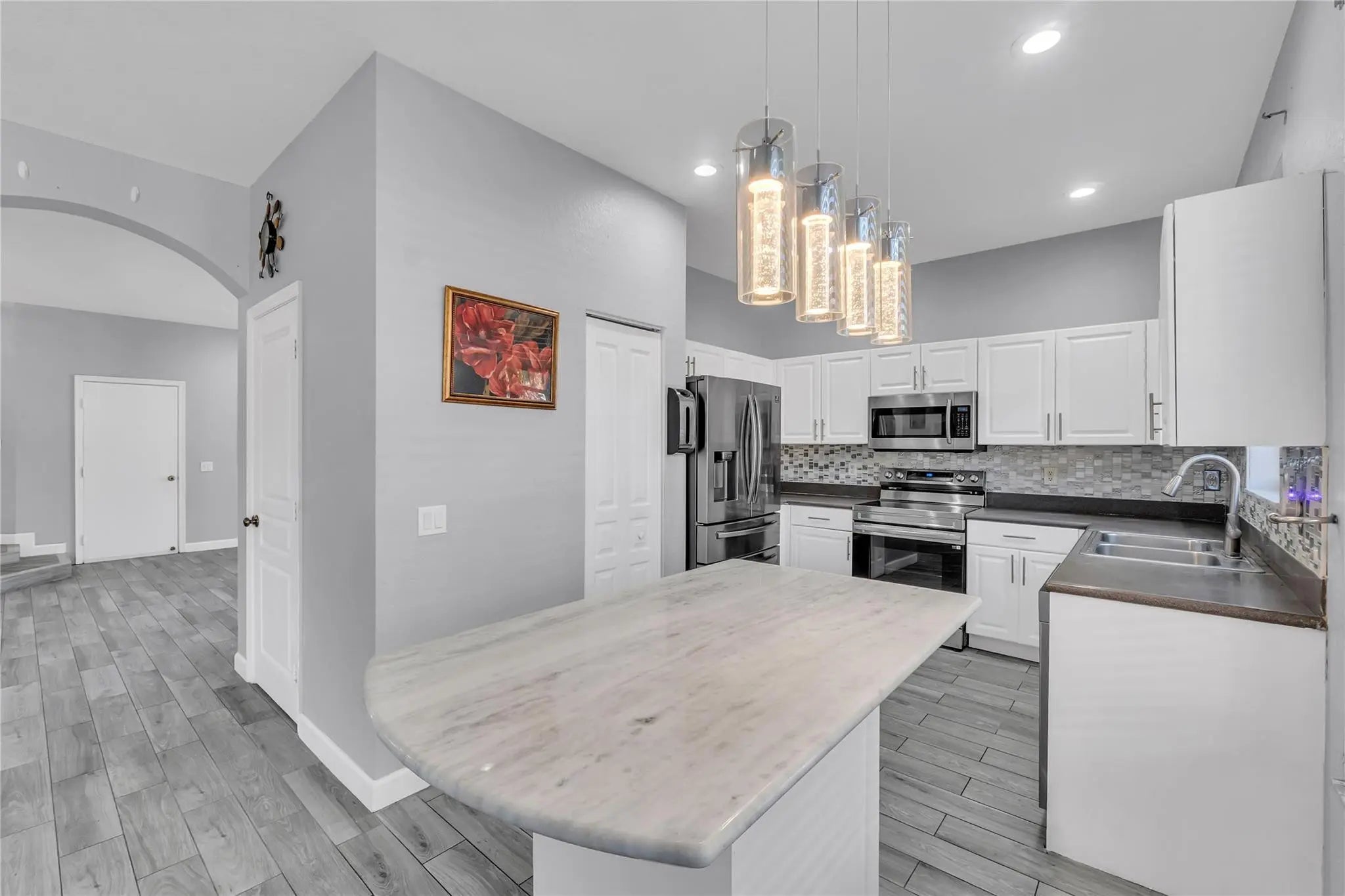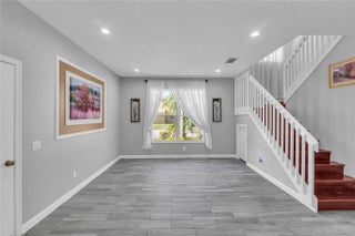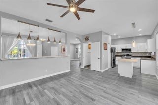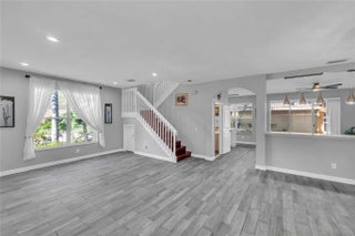Beautifully updated home in a gated community featuring 4 bedrooms and 2.5 baths on a desirable corner lot. Open and bright floor plan with LED lighting, modern fixtures, and wood-look tile throughout the downstairs. Centrally located within walking distance to elementary and middle schools, grocery stores, restaurants, and easy highway access. Enjoy resort-style amenities including swimming pool, a clubhouse, tennis and basketball courts, fitness center, and playground.