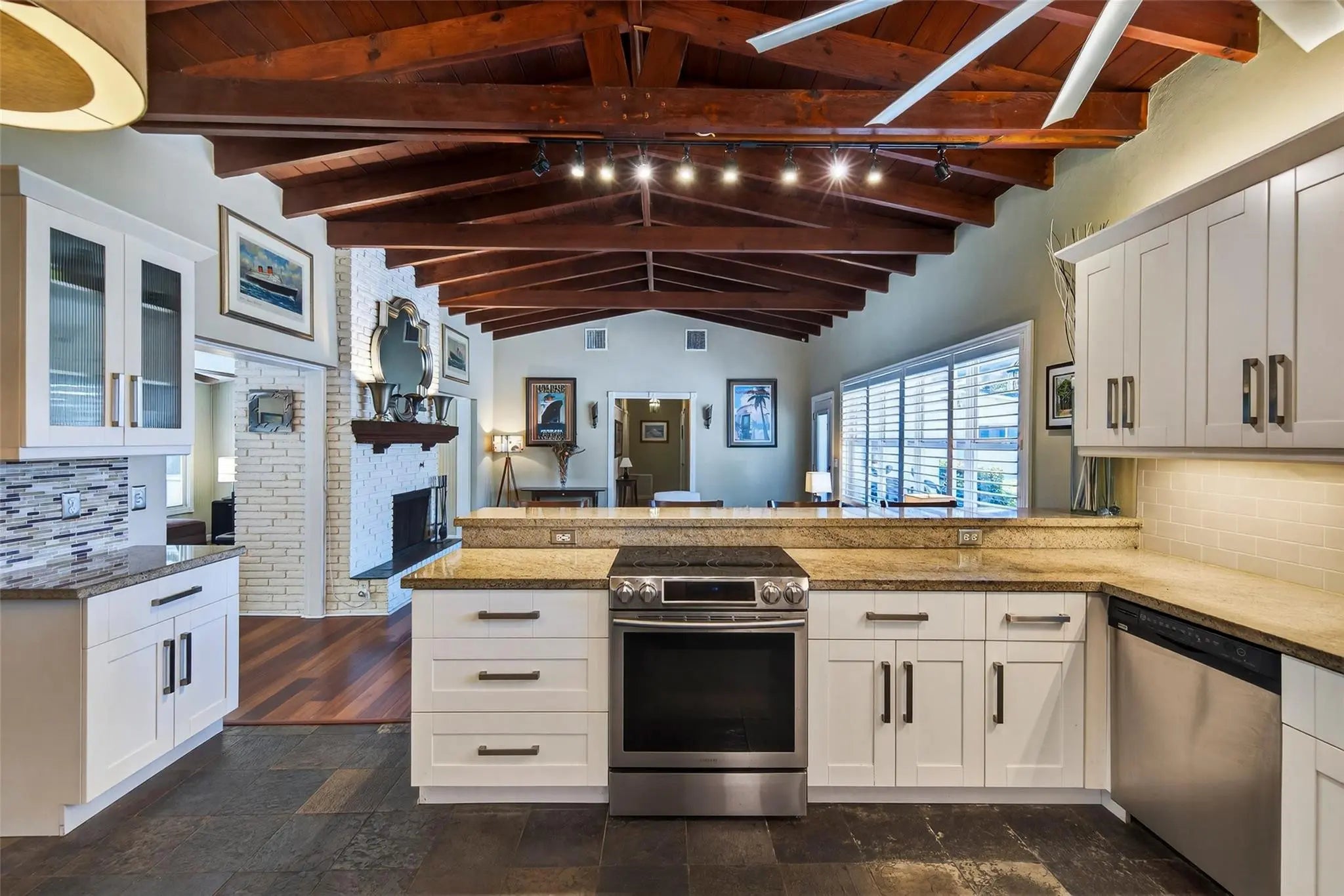 Beautiful 3-bedroom, 3-bath pool home with excellent curb appeal in a desirable neighborhood. Features soaring vaulted beamed ceilings, a cozy wood-burning fireplace, and a bright, open layout ideal for everyday living and entertaining. Enjoy indoor-outdoor living with a screened patio overlooking the pool. Updated kitchen and newer bathrooms, including a unique third cabana bath with an antique clawfoot tub. Impact windows and doors throughout, two-zone A/C, handicap-accessible design, fully fenced yard, large garage, and updated bilateral PVC plumbing to the street. Conveniently located near shopping, dining, parks, and local amenities.