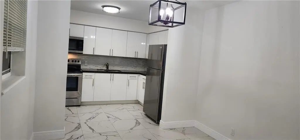 WOW! Huge Price Reduction....Updated Spacious Hallandale Beach ( East of 95) end Unit Apt features 2 Large Spacious Bedrooms with a Completed Remodeled Bathroom and Kitchen. Modern Kitchen with Granite Counter top, Glass Backsplash with New Stainless Steel Stove, Ceiling Fans, Porcelain Floors, Freshly Painted with Modern Fixtures. The property has a Newer Roof. Comes with two parking spacing. Fenced in Side Yard which can be used by Tenants to relax in the outside. Washer & Dryer on the Premises. Water & Trash included. Good Location Quiet community, minutes from Aventura and 10 drive to the beaches. Must have good rental history, and credit score in the 600's NO Association approval required. NO pets. MOVE IN RIGHT AWAY.