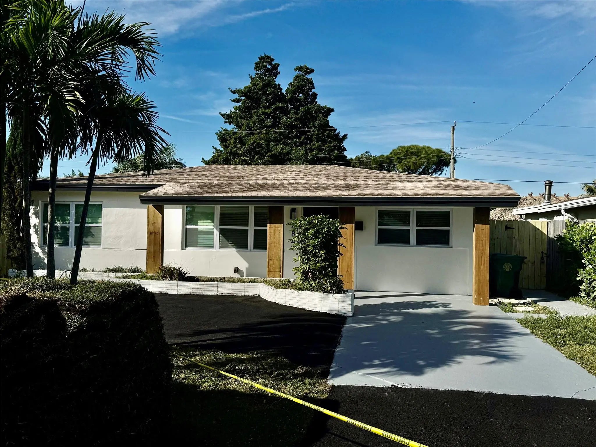 Beautifully renovated 1100 sq ft, 3 bedroom, 2 bath single family home with circular driveway and covered porch in desirable Oakland Park, east of I-95, just minutes to the beach, shopping, Wilton Manors, and major highways. Features an excellent flor plan with a spacious primary suite and private bath. Open concept kitchen and dining areas perfect for entertaining and showcases a modern Italian style kitchen. Large backyard with room for a pool, plus generous front yard with ample parking. Completely updated with New Roof, New Bathrooms, New Impact Windows and Doors, New Electrical and Plumbing, New A/C and Porcelain Tile Floor in Main Area and Wood Floors in Bedrooms. Fully move-in ready.