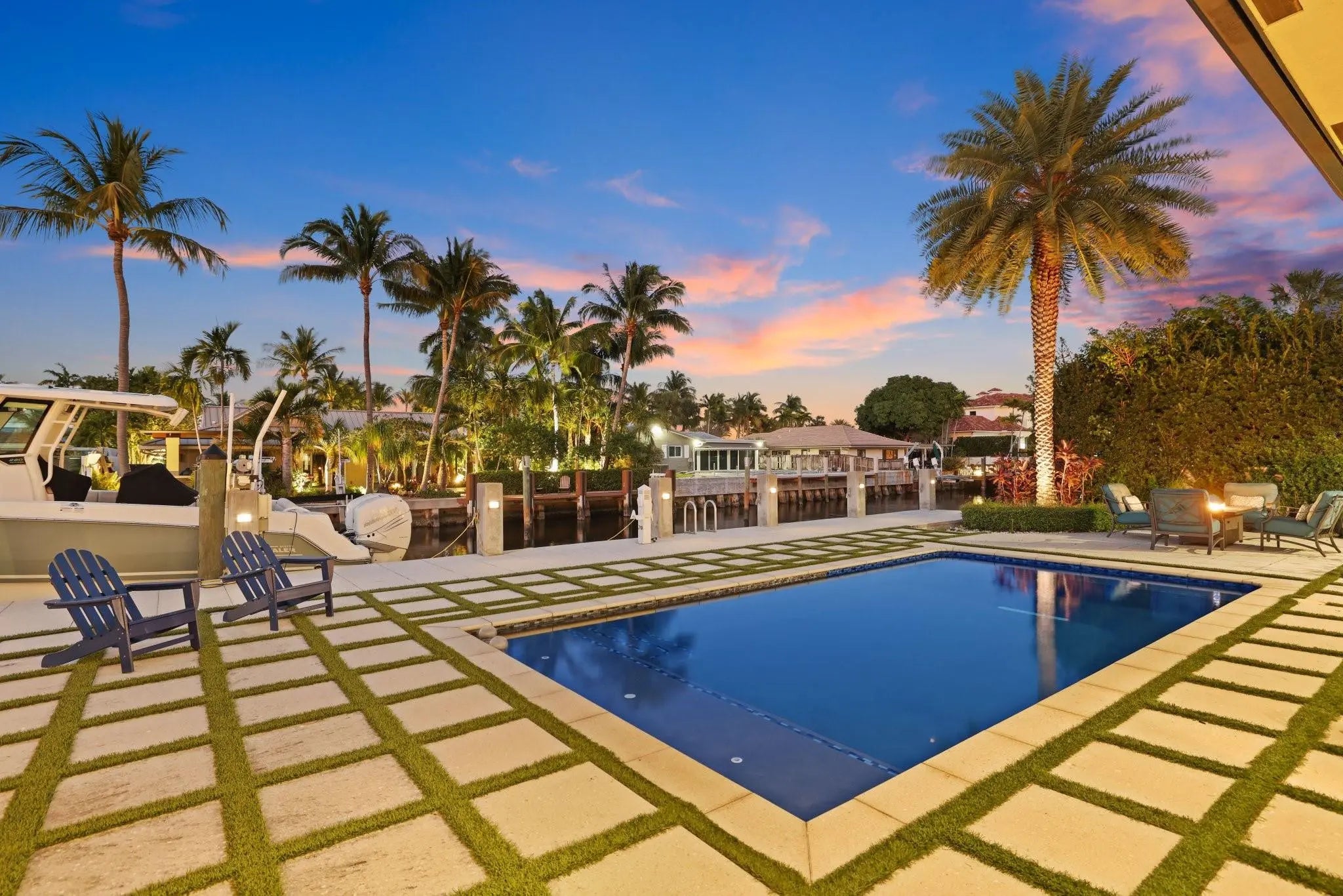 Premier,waterfront Coral Ridge Country Club home,expanded,fully remodeled and completed in 2018. 90' concrete dock,boat lift-15,000 lbs. Ocean access,no fixed bridges. Covered pergola with dining area,outdoor kitchen on covered patio. 5 bedrooms,3 full bath. Thermador appliances,gas range. Custom closets ,include a cedar lined one. Vaulted,wood ceilings in main area and patio,ship lap in the entry and family room, and coffered ceilings. 2 acs 2024/2025,impact glass/doors for the entire home,tankless hot water heater 2017,metal roof 2017,pool 2018. 2 car garage,epoxy floor,Garagetek,EV charger. 150-bottle wine cooler in bar. Walk to parks,restaurants,golf,beach-offering the Florida lifestyle at your doorstep. Bring your boat and move right in, with fishing, paddle boarding in your backyard.
