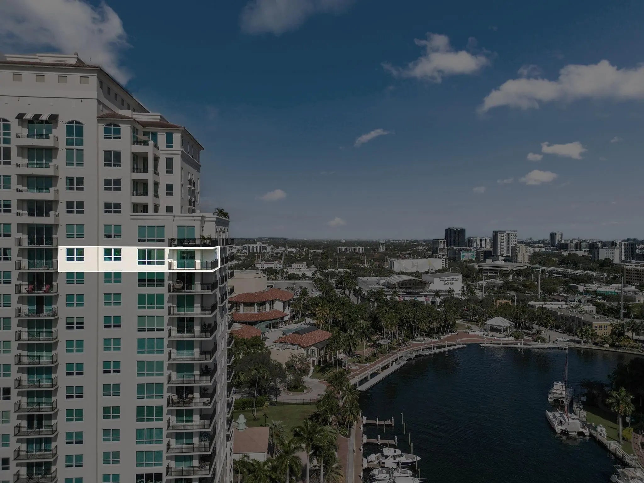 Stunning high-floor SE corner residence w/ spectacular views of the New River, city skyline, ocean & Miami. Features porcelain tile throughout, motorized window treatments, designer wall coverings & tons of window light. Chef's kitchen w/ granite countertops & stainless steel appliances. Split-bedroom layout offers 2 primary suites w/ walk-in closets & custom built-ins; main suite features a private luxurious bath w/ separate oversized soaking tub & walk-in shower. Sprawling wrap-around terrace, new Bosch AC & 2 side-by-side garage spots. The Symphony is a gated resort-style riverfront community w/ 2-story lobby, 24/7 security & valet, business center, club room, fitness center, heated pool & spa, salon, billiards, wine room, theater & more. Moments to dining, shopping & entertainment!