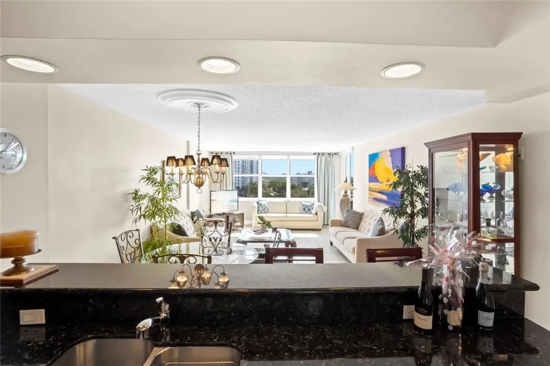 Bright Beautiful 2/2 by the Beach, southern exposure with ocean and Intracoastal views. Walk to the beach, the water taxi, top restaurants like Shooters, Mastro's, & Greek Islands. Right in between LBTS, the Galt Mile, and famous Fort Lauderdale Beach. Open floor plan stainless steel appliances, eat-in bar top, and beautiful granite counters. Primary bedroom is oversized with large walk in and ensuite bathroom. Ample storage throughout. Offered turnkey fully furnished. Comes with storage just across the hall. Updated building with new gym, new tennis court, new pool, glass balconies, impact windows, and onsite security.