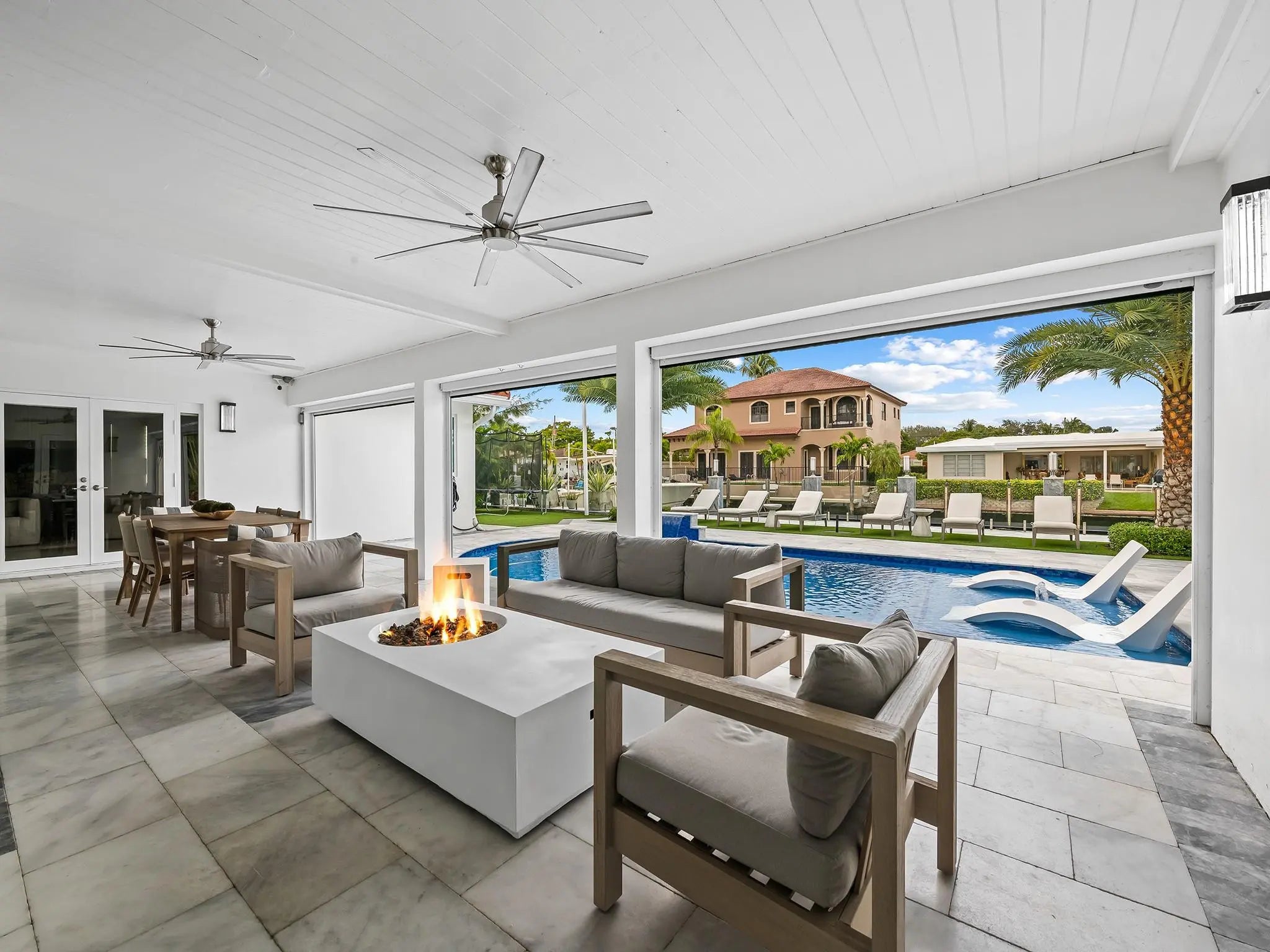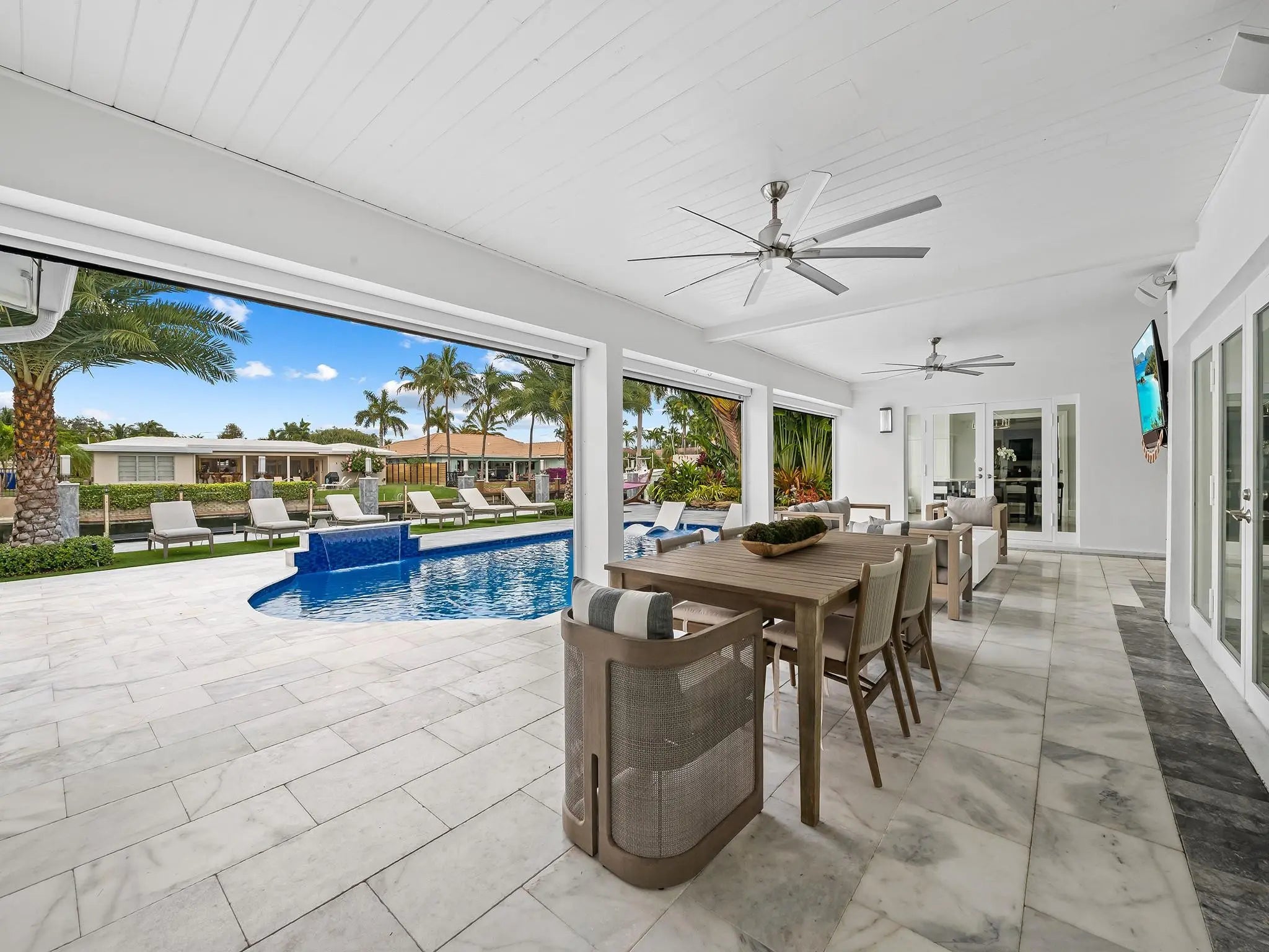 Located in the prestigious Landings neighborhood of Fort Lauderdale, this turnkey 4 bedroom + office, waterfront residence offers the perfect blend of comfort, security, and South Florida lifestyle. Featuring a 2021 roof, all-impact windows, PVC plumbing throughout, and a full-home generator, the property is built for peace of mind. Enjoy Sonos audio throughout, exterior security cameras, power screens and shutters on the patio, a heated saltwater pool, a tranquil koi pond, and a brand-new elevated concrete seawall with sleek glass barrier. Boaters will appreciate the 14,000-lb boat lift and floating dock platform ideal for paddleboards and kayaks, while an outdoor sauna creates a private wellness retreat. A rare opportunity in one of Fort Lauderdale’s most desirable communities.