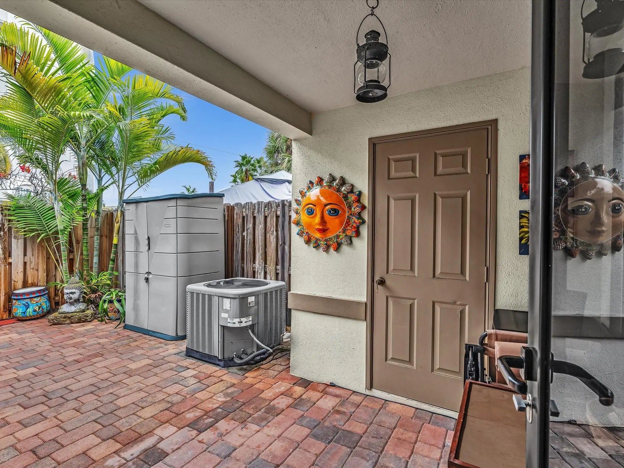 Substantially updated with quality craftsmanship and modern style, this move-in-ready townhome is ideally situated in a vibrant downtown location. The kitchen features solid wood custom cabinetry, high-end Samsung stainless steel appliances, and granite countertops. Volume ceilings enhance the open, airy living area. The first floor offers a bedroom with an en-suite bath and an in-unit washer and dryer in a large storage closet. Impact windows and doors provide security and quiet comfort. The fenced backyard includes a gazebo, seating area, and extra storage—perfect for outdoor living. Upstairs features bamboo flooring, two bedrooms, and an en-suite bath. Minutes to Brightline, Las Olas, Wilton Manors, the beach, and I-95. Community amenities include a heated pool, clubhouse, and tennis.