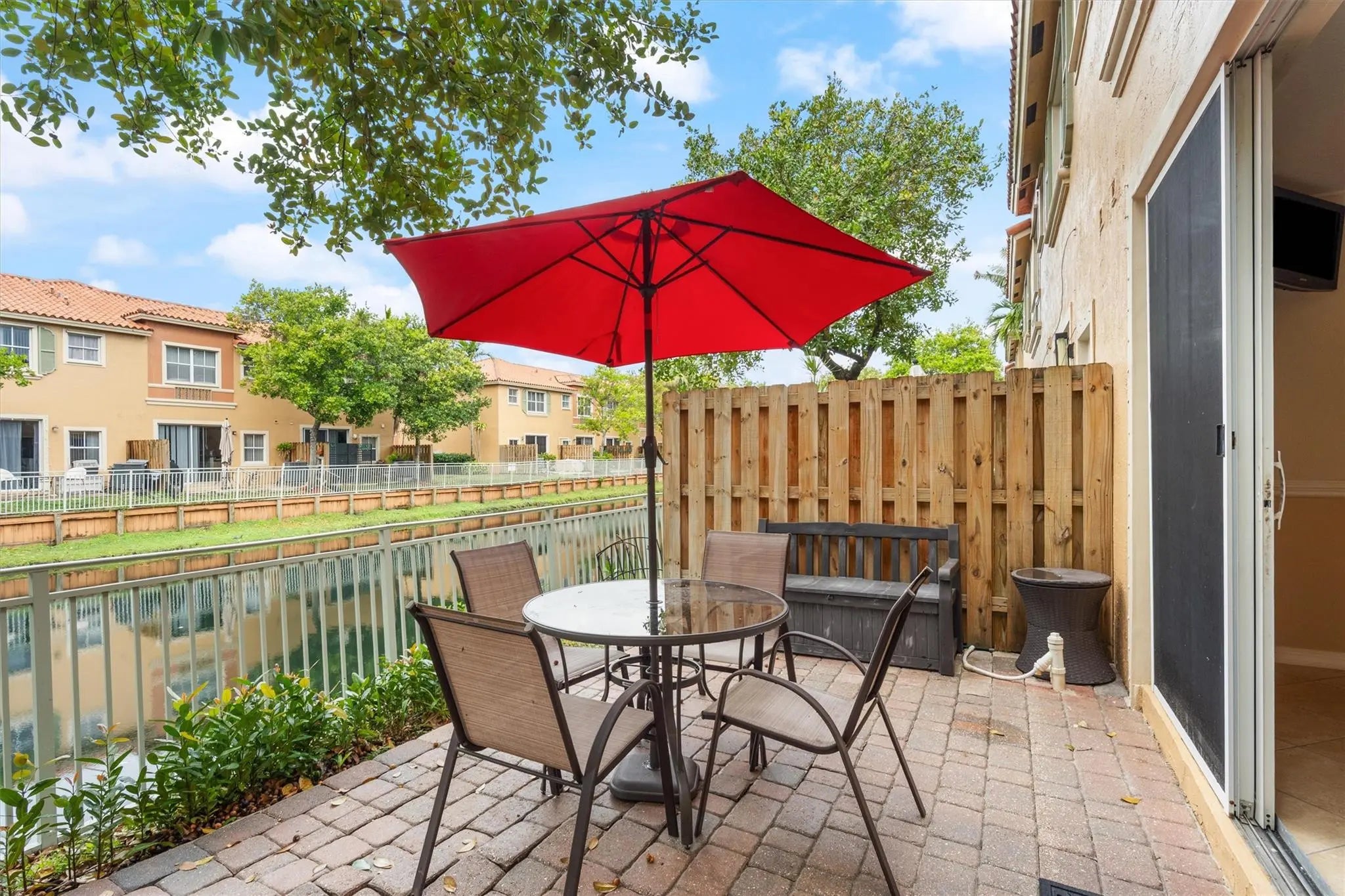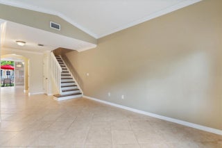 Immaculate Mediterranean-style townhome located in The Villas at Harbor Isles, a secure, gated community. This lagoon-front 3-bedroom, 2.5-bath residence offers serene water views from private, paved patio. Thoughtful updates include new wood flooring throughout second level, renovated kitchen with granite counters, newer stainless steel appliances, built-in pantry and additional counter seating. Extended utility room with washer/dryer and extra storage, plus under stair storage. Spacious primary suite offers walk-in closets and abundant natural light. Resort-style pool, playground and 24-hour gated security. One small pet permitted under 25 lbs. Assigned parking plus guest parking directly in front of the unit. Ideally situated just minutes from I-95, the airport, shopping, and beaches.