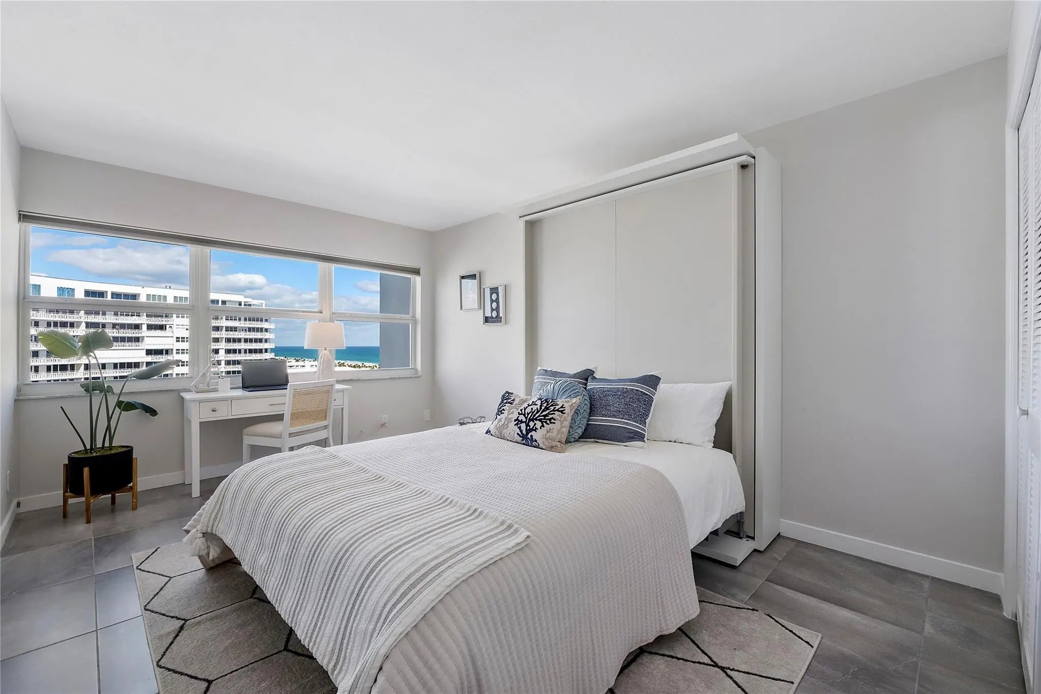 Watch the sunrise with your morning coffee and unwind at sunset with a glass of wine—all from the comfort of your home in the sky. Enjoy sweeping ocean, inlet, and downtown Fort Lauderdale skyline views from this fully renovated NE corner residence at Sky Harbour East. Perched on the 15th floor, this 2-bedroom plus den, 2-bath home features an east-facing balcony, impact glass, & water views from every room. ELSS upgrades are underway and paid in full by the seller, with fully funded SIRS reserves. Beachfront amenities include heated pool, fitness center, putting green, BBQ area, fishing pier, security, extra storage, and direct beach access. Prime Harbor Beach location near Las Olas, Pier 66, dining, airport, Brightline, and major roads. Washer and dryer in unit.