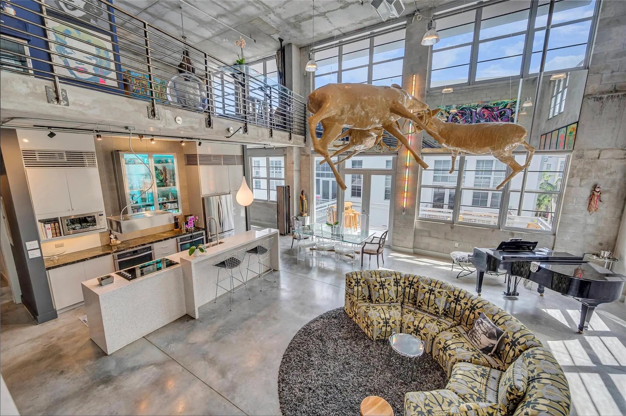 True NYC-Style Loft Penthouse in Flagler Village - Largest 2 story of its kind in the community. Ultimate urban lifestyle in this magnificent, one-of-a-kind two-story penthouse. "true" industrial loft features soaring 22-foot ceilings, impact windows, flooding the open-concept space with natural light and offering expansive city views. Aesthetic highlights include polished concrete floors, exposed ductwork, and a modern gourmet kitchen with designer finishes. Layout offers maximum privacy with 2 oversized primary suites (1 on each level). The 2nd-floor suite overlooks the living area and boasts 2 private terrace with exclusive direct access to rooftop amenities—step right out to the pool, gym, and BBQ area. 2nd park spot avail for purchase 2 pets any size, healthy building no assessments